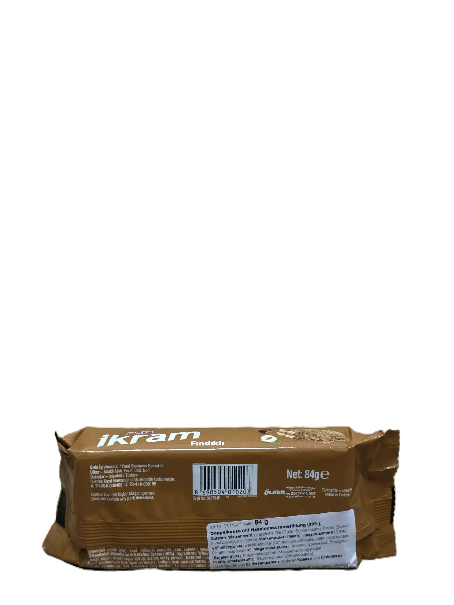 Einzeln verpackte Kekse mit Haselnusscremefüllung, 84g Packung.