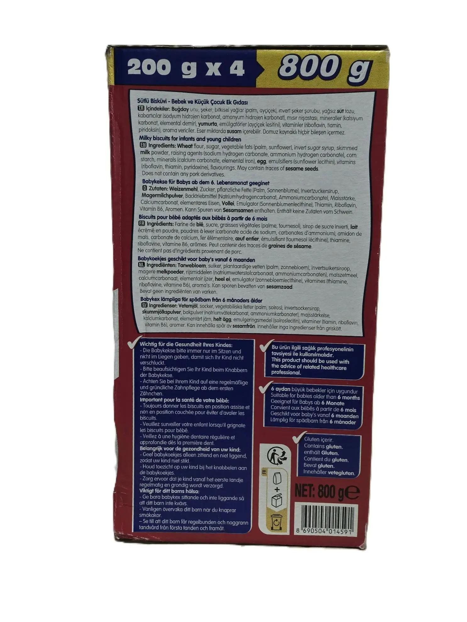 Klassischer Baby-Keks, angereichert mit Vitaminen und Mineralien, ideal als Beikost, 800g Packung.