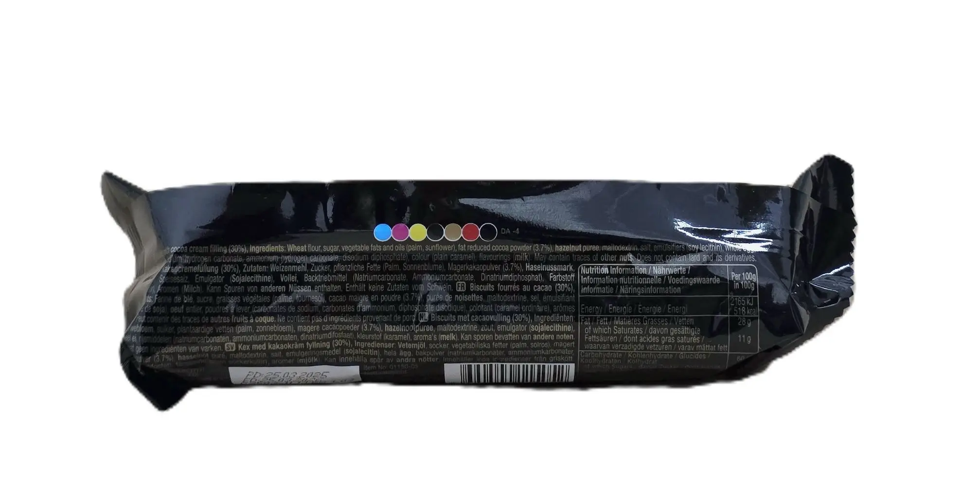 Zweifarbige Kekse gefüllt mit Kakaocreme, 130g Packung.