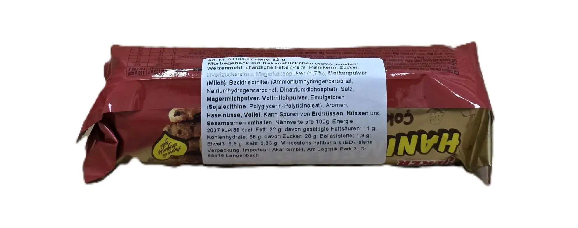 Mürbegebäck-Kekse mit Schokoladentropfen (Chocodamla), 82g Packung.