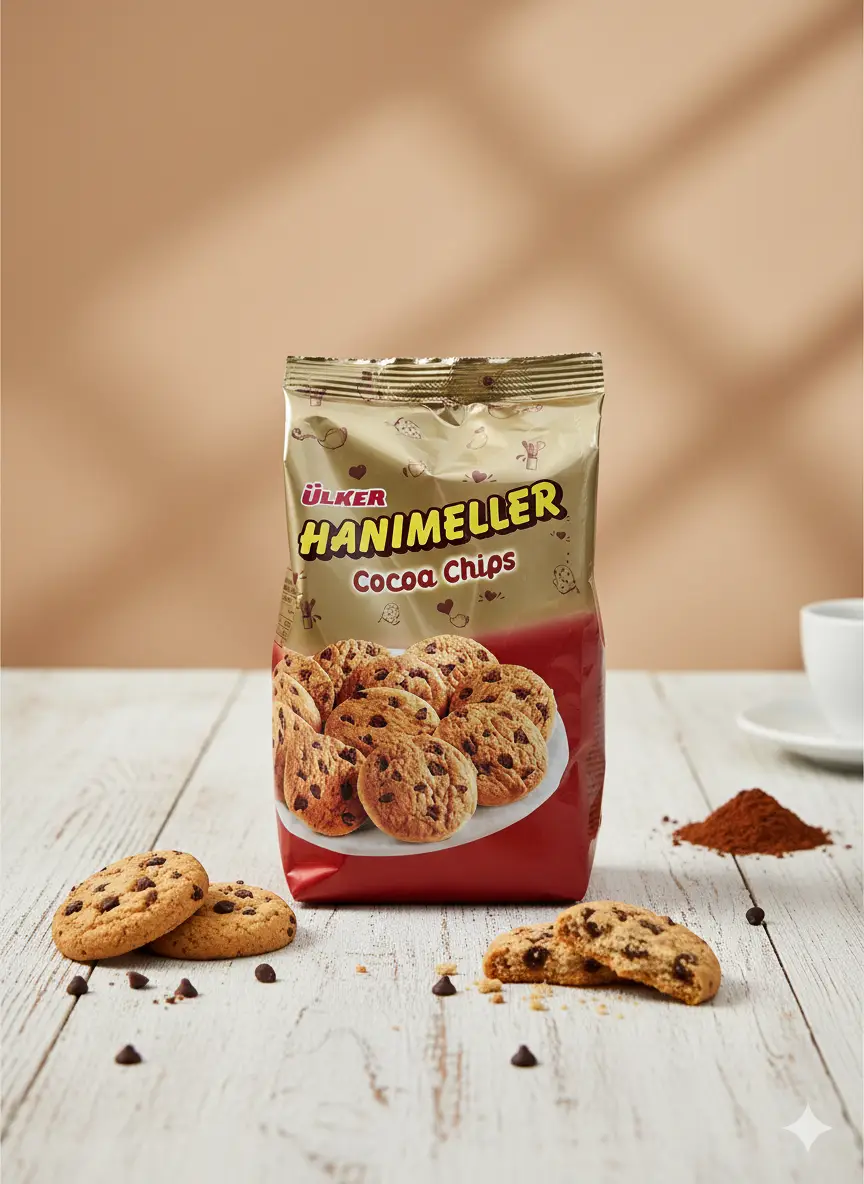 Mürbegebäck-Kekse mit Kakaogeschmack und Schokostückchen (Chips), 170g Packung.