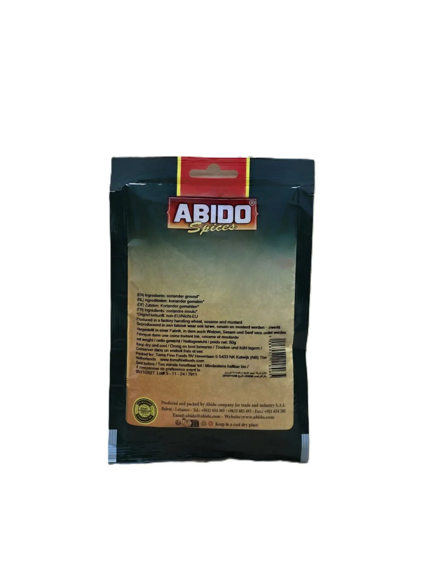 Abido Koriander Gemahlen – Mild aromatisches Korianderpulver aus dem Libanon, perfekt für Fleisch- und Gemüsegerichte. Inhalt: 50g.