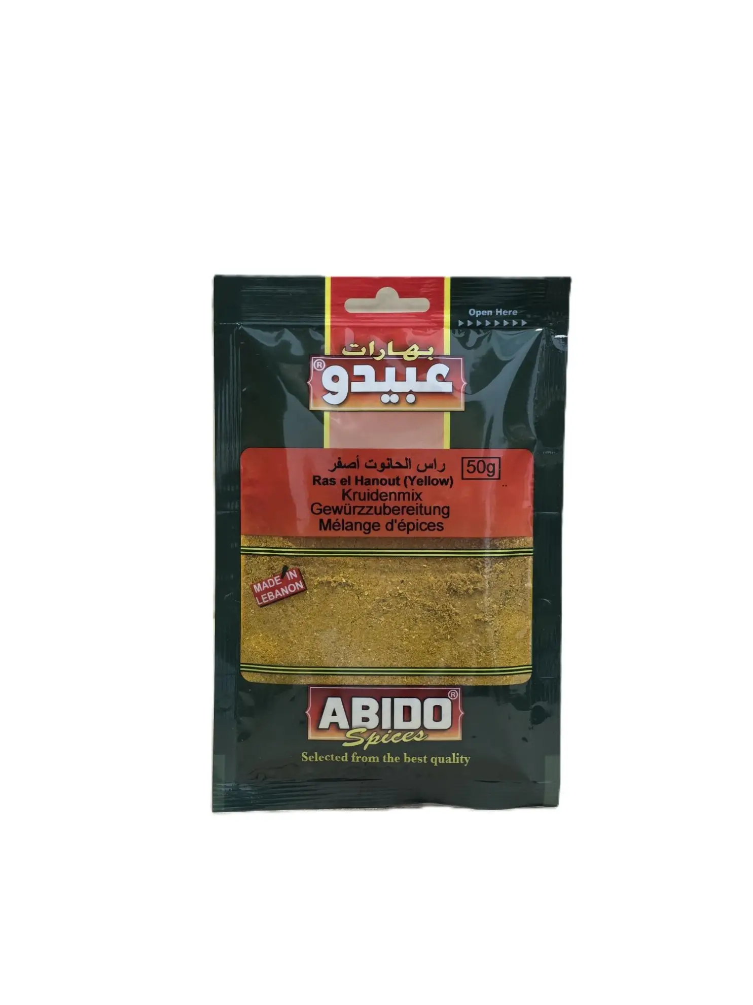 Abido Ras El Hanout (Gelb) – Aromatische gelbe Gewürzmischung für orientalische Spezialitäten. Inhalt: 50g.