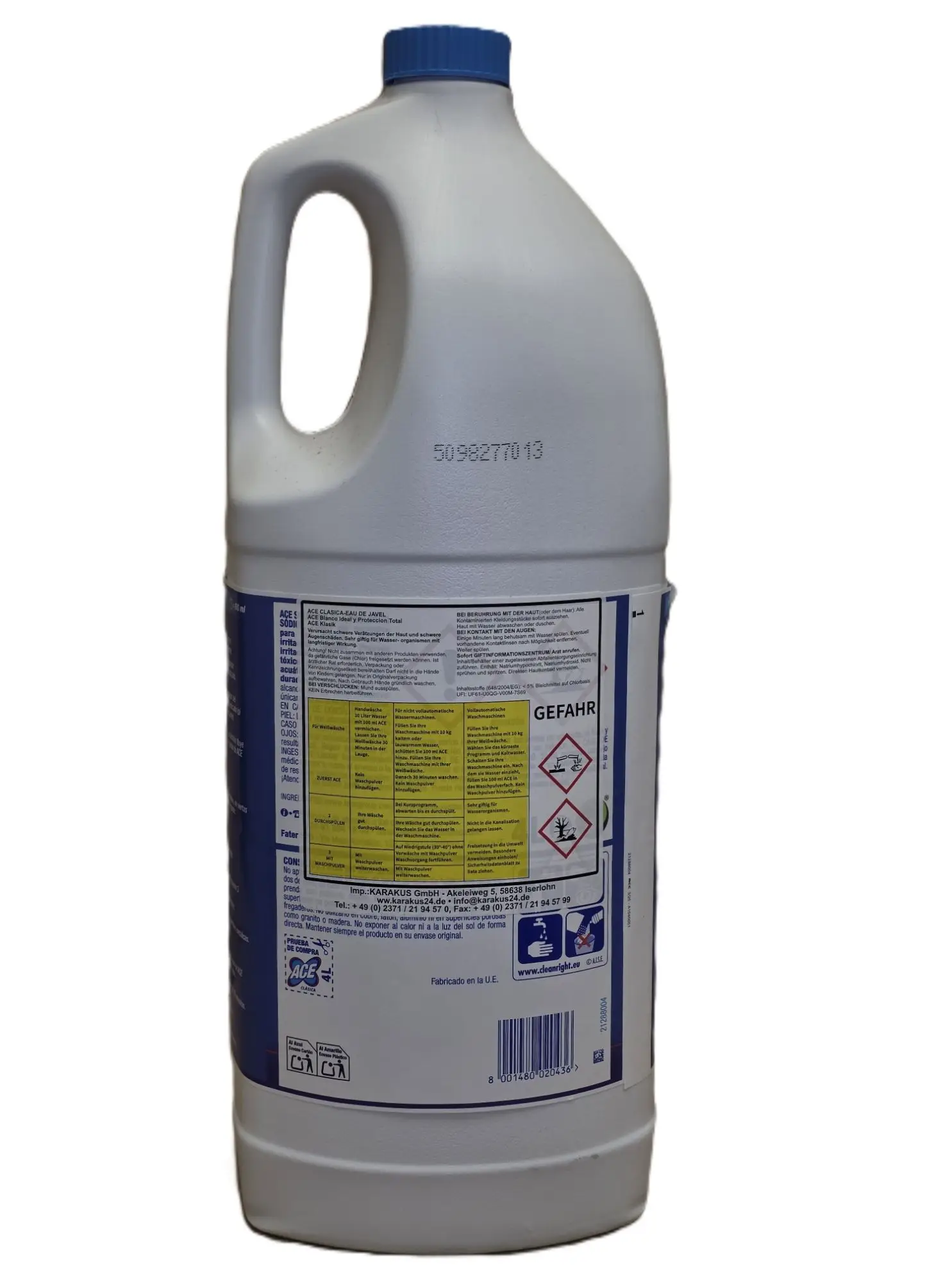 Zutaten: Bleichmittel auf Chlorbasis (Natriumhypochlorit).