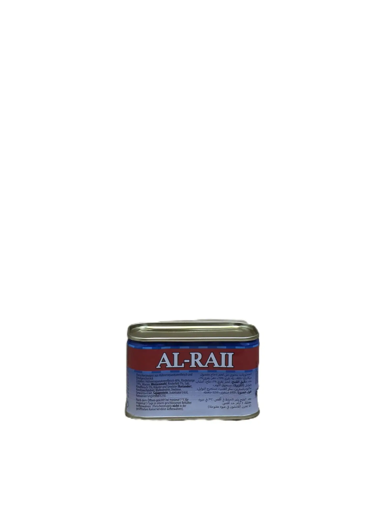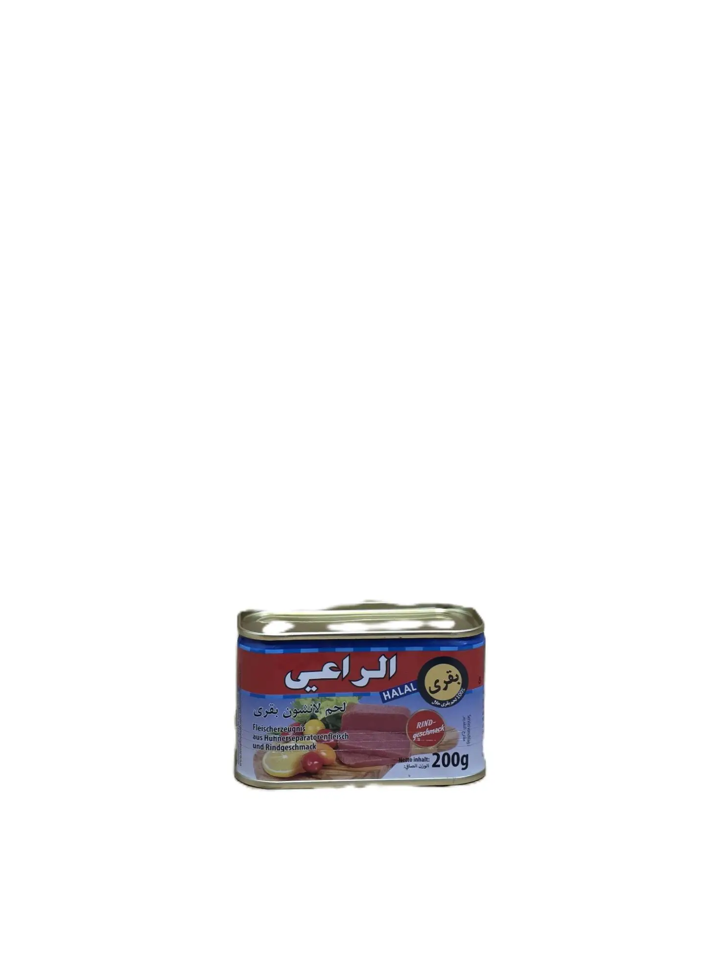 Halal Dosenfleisch (Luncheon Meat) von AL‑RAII mit Rindgeschmack. Praktisch in Scheiben zu verwenden – ideal für Sandwiches und Snacks. Inhalt: 200 g.