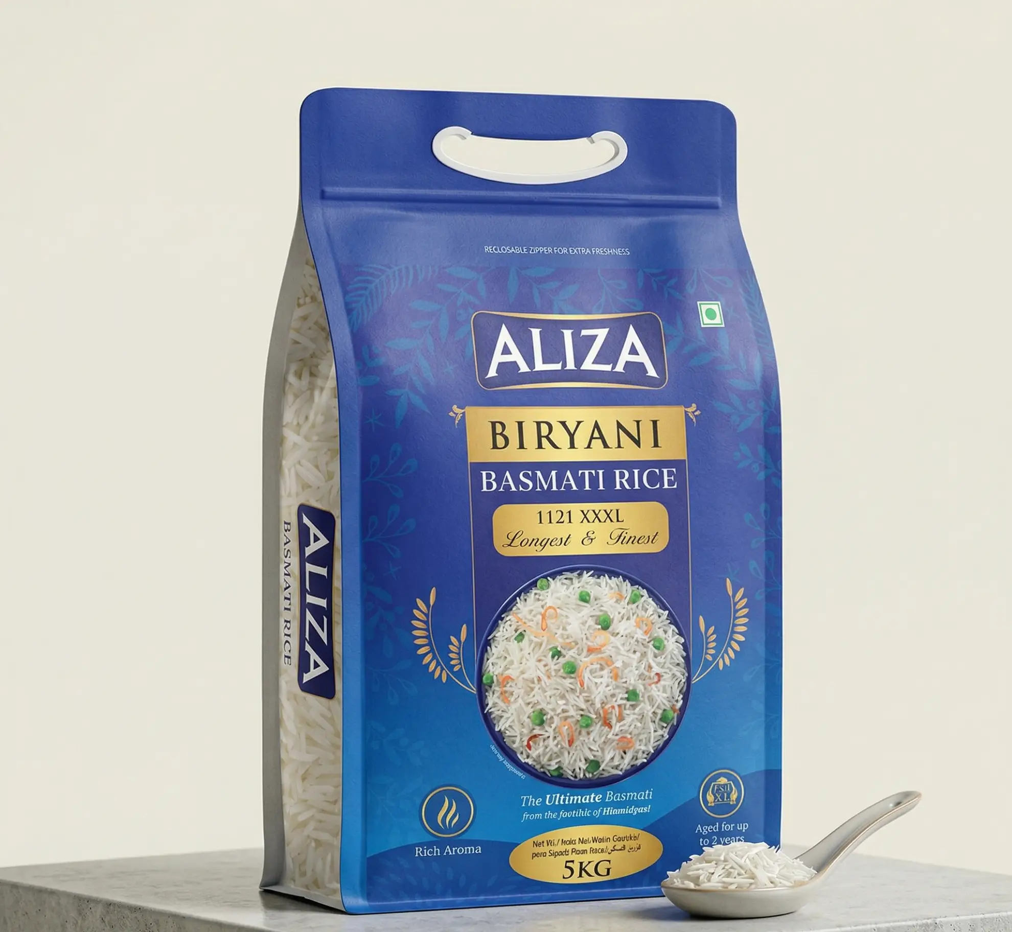 Aliza Biryani Basmati Reis – Die Krönung der indischen Küche Erleben Sie höchste Qualität mit dem Aliza 1121 XXXL Basmati Reis. Dieser "Longest & Finest" Reis zeichnet sich durch seine außergewöhnlich langen Körner und sein exquisites Aroma aus.