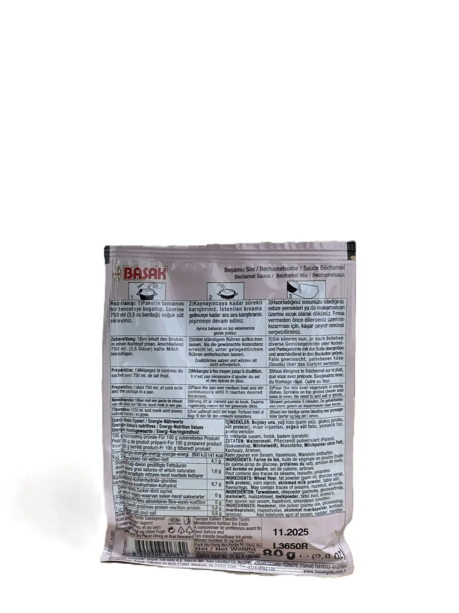 Basak Besamelsoße – Klassische Bechamelsoße zum einfachen Anrühren. Perfekt für Lasagne, Aufläufe und Gemüsegerichte. Nettogewicht: 80g. Kategorie: Lebensmittel.