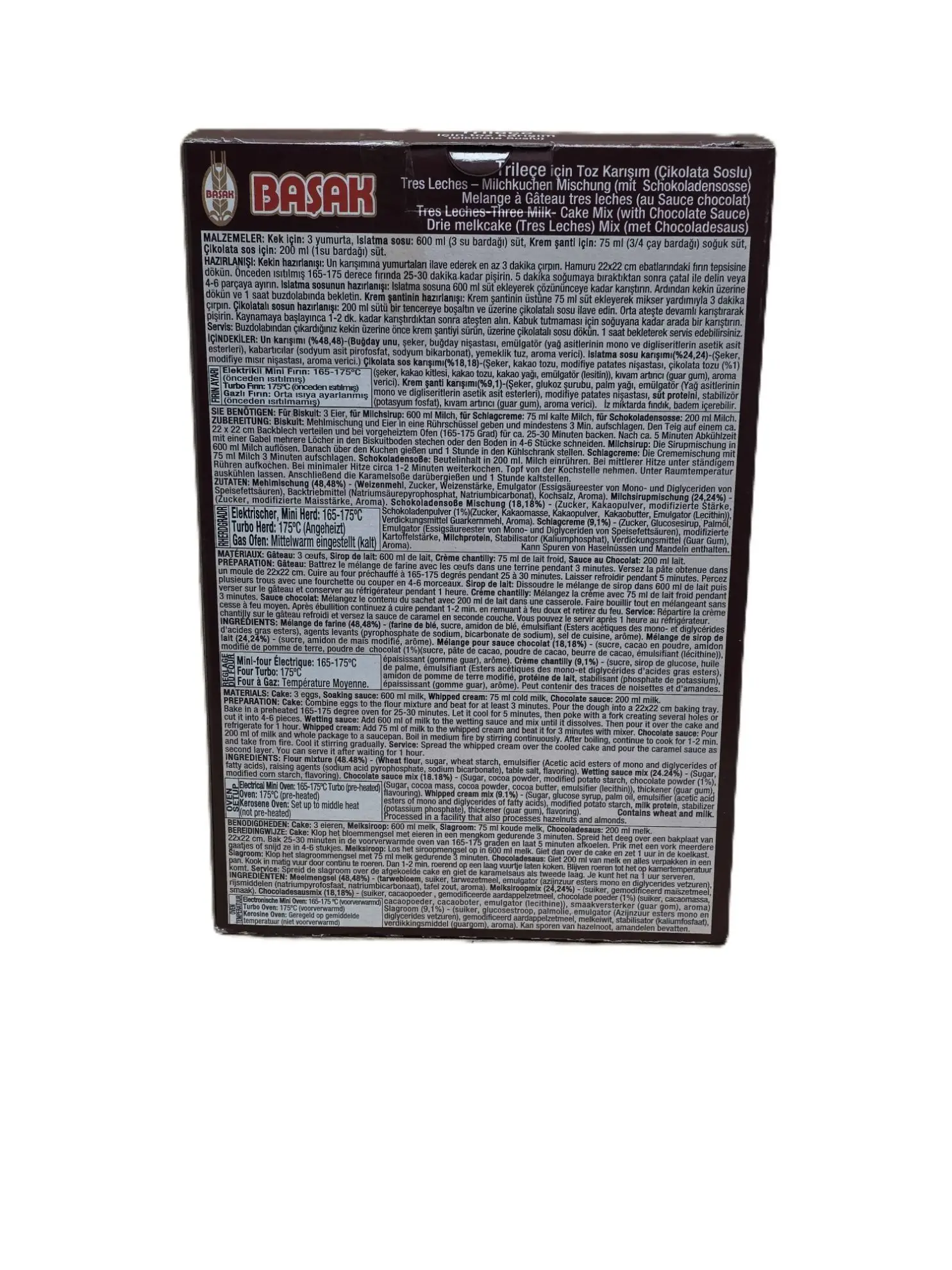 Basak Trilece mit Schokoladensauce – Leckere Milchdessertmischung (Tres Leches) mit reichhaltiger Schokoladensoße. Einfach zuzubereiten, 12–15 Portionen. Nettogewicht: 330g. Kategorie: Dessertmischungen.