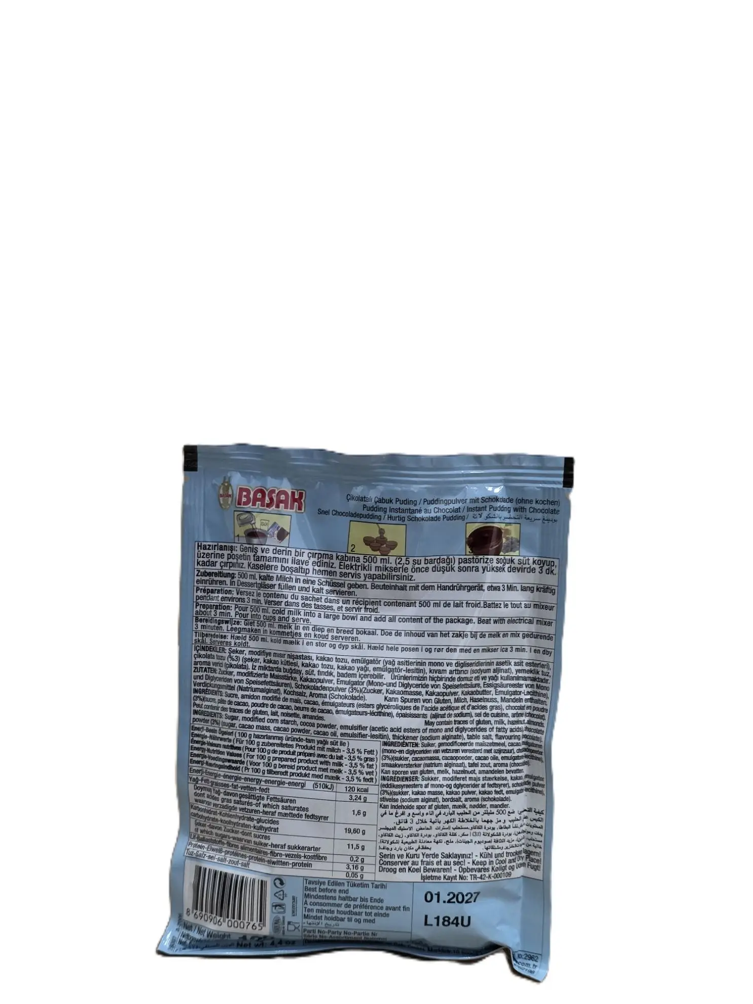 Basak Schneller Schokoladenpudding – Instant-Dessert mit reichhaltigem Kakaogeschmack. Einfach kalt zubereitet, servierfertig in Minuten. Nettogewicht: 125g. Kategorie: Desserts & Pudding.