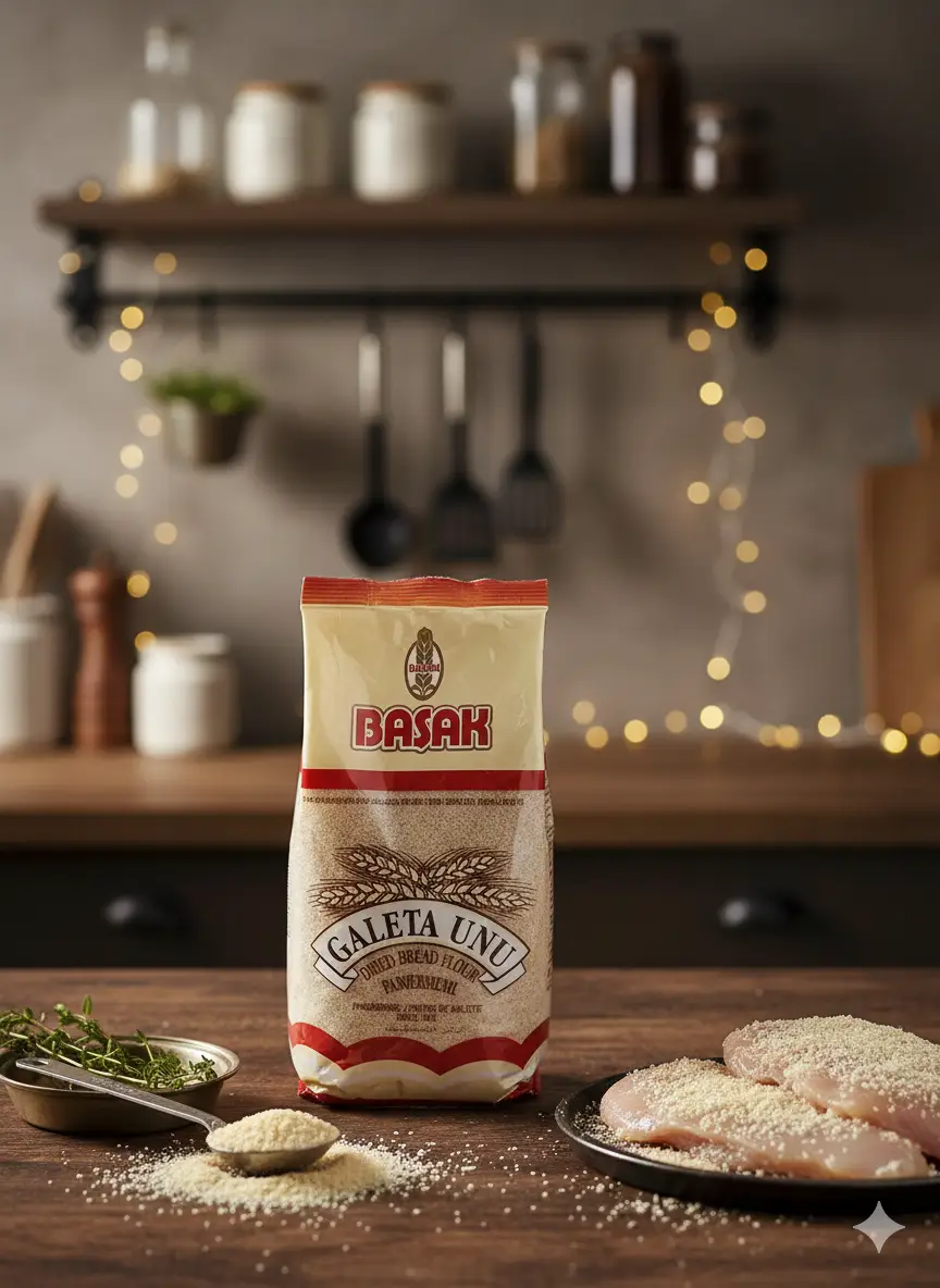 Basak Paniermehl – Fein gemahlenes getrocknetes Brotmehl, ideal zum Panieren von Fleisch, Fisch und Gemüse. Nettogewicht: 250g. Kategorie: Backzutaten.