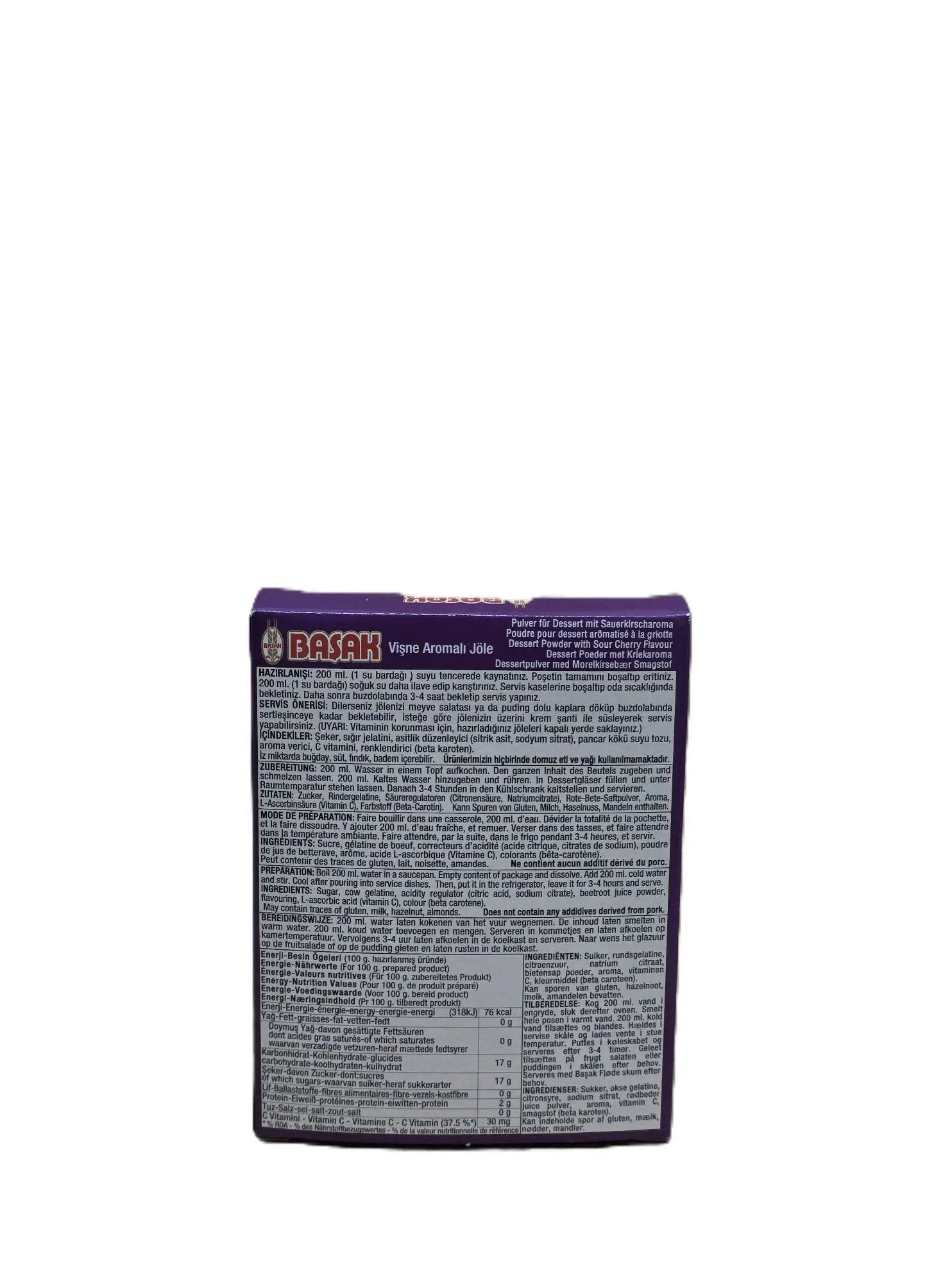 Gelatine-Dessertmischung mit Sauerkirscharoma, 100 Gramm.