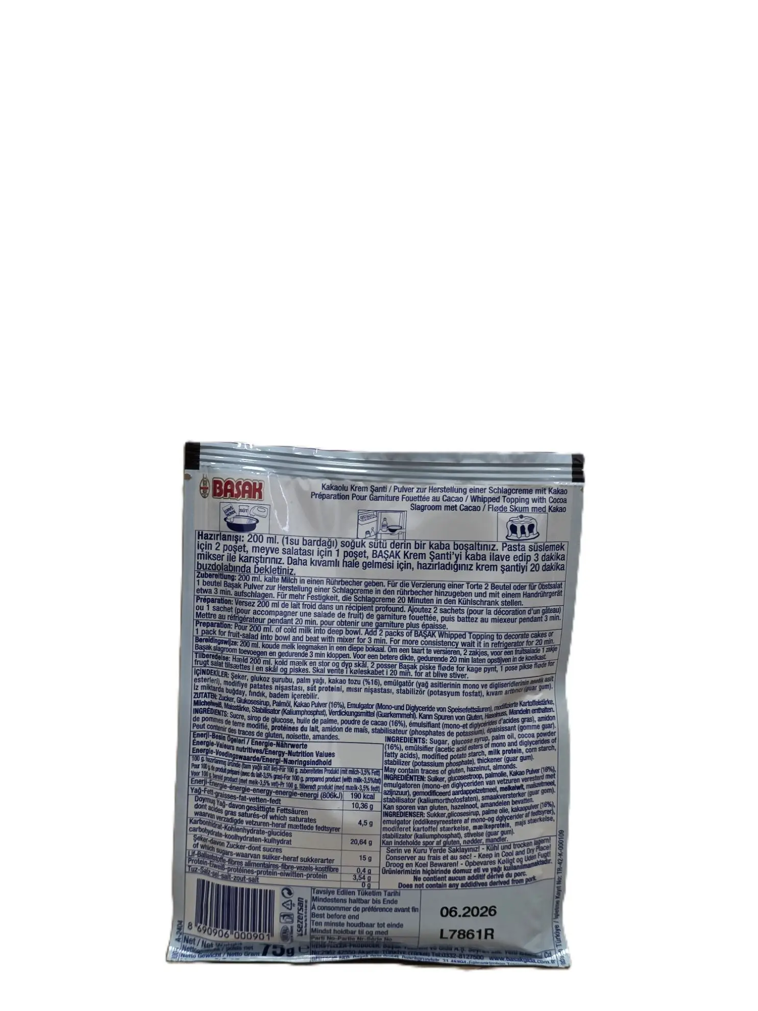 Kakaohaltige Creme Chantilly-Mischung zur Herstellung einer luftigen Schokoladen-Sahnecreme für Torten und Desserts, 75 Gramm.