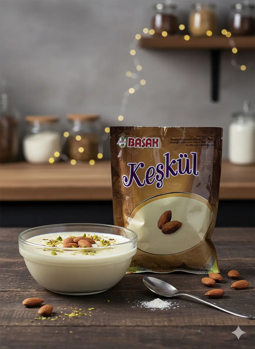 Basak Keskül – Türkisches Mandelmilch-Dessert, fein und cremig im Geschmack. Schnell zuzubereiten, ideal nach dem Essen. Nettogewicht: 140g. Kategorie: Türkische Desserts.