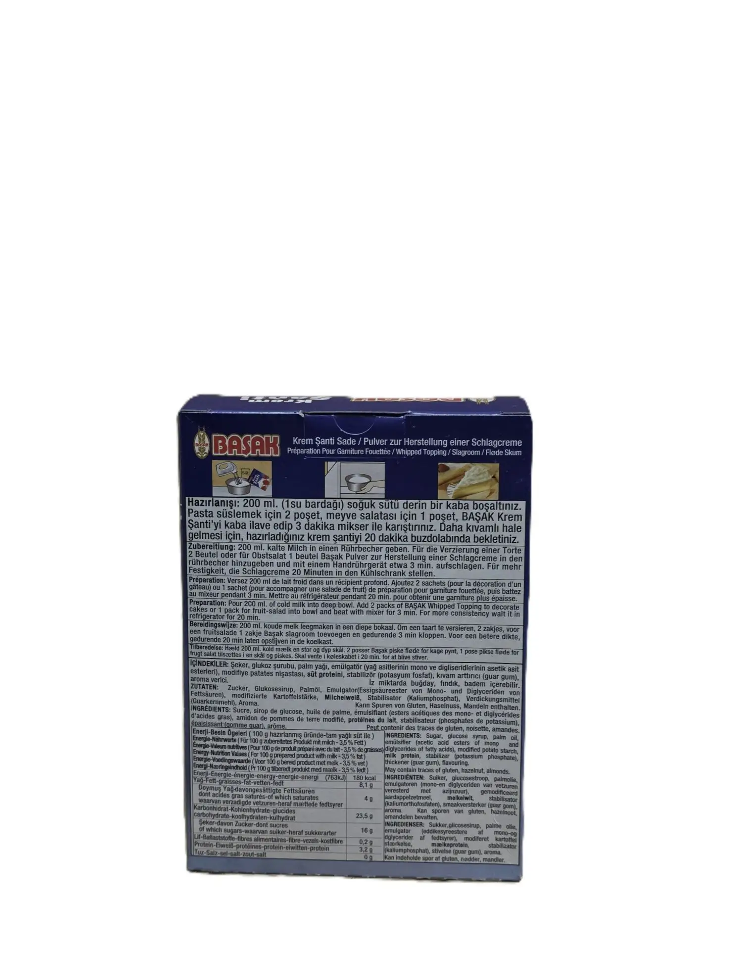 Basak Schlagsahne Klassisch – Großpackung für Familien. Pulver zur Herstellung einer cremigen und luftigen Schlagsahne. Perfekt für Kuchen, Desserts und Obstsalate. Nettogewicht: 300g. Kategorie: Backzutaten & Desserts.