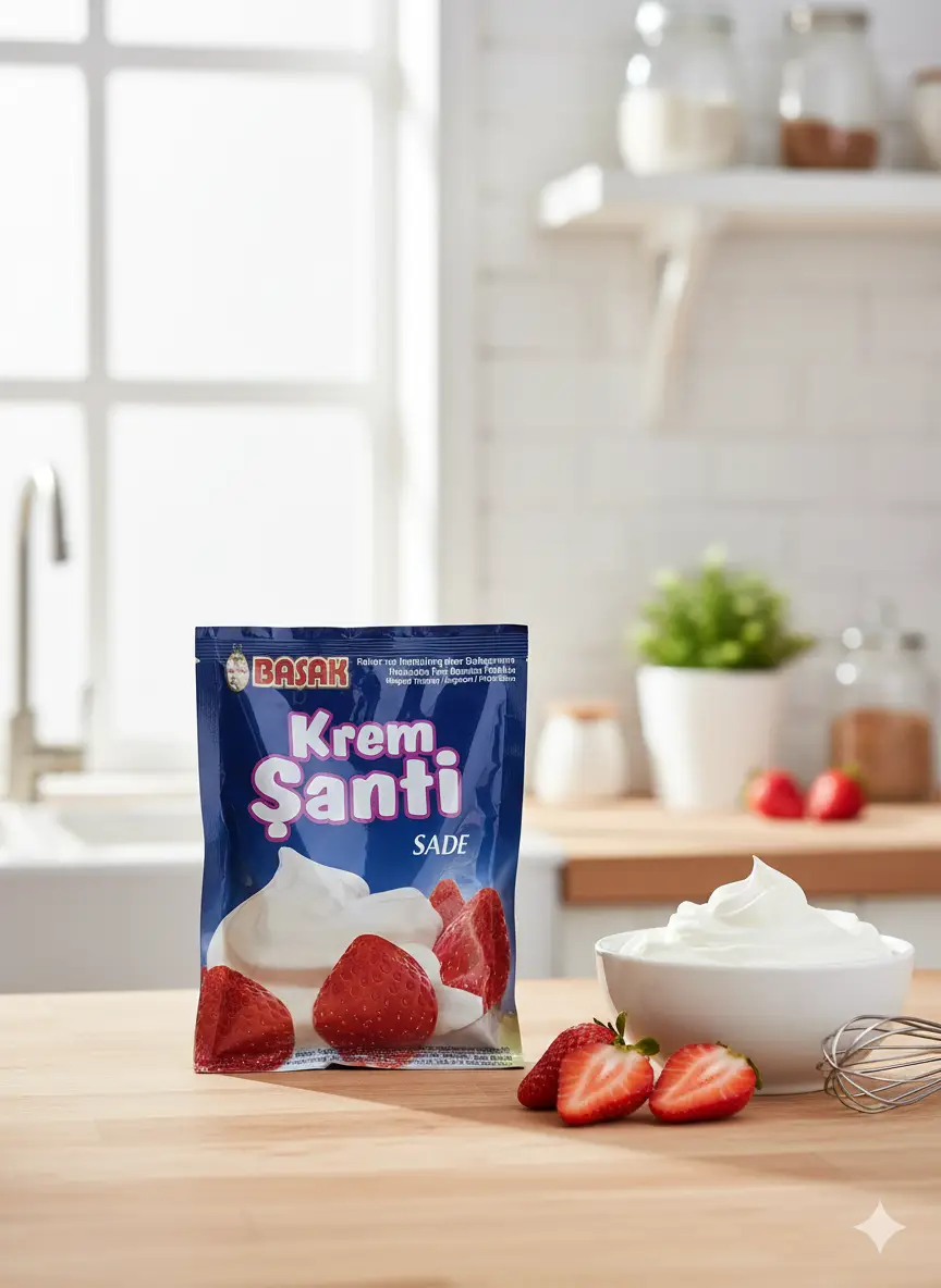 Basak Schlagsahne Klassisch – Pulver zur Herstellung einer neutralen, luftigen Schlagsahne. Ideal für alle Arten von Desserts, Kuchen und Obst. Nettogewicht: 75g. Kategorie: Backzutaten & Desserts.