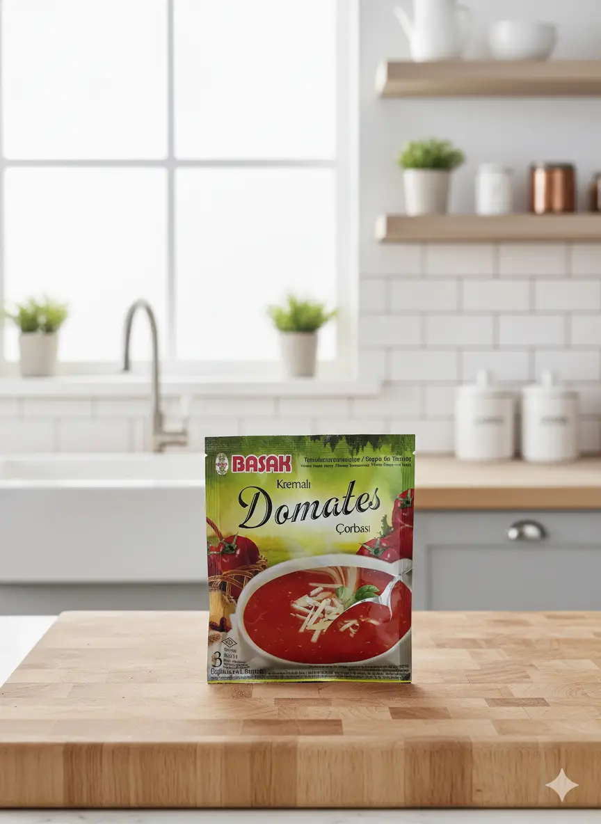 Basak Tomatencremesuppe – Cremige Tomatensuppe mit feinem Geschmack, einfach zuzubereiten und köstlich. Nettogewicht: 50g. Kategorie: Lebensmittel.