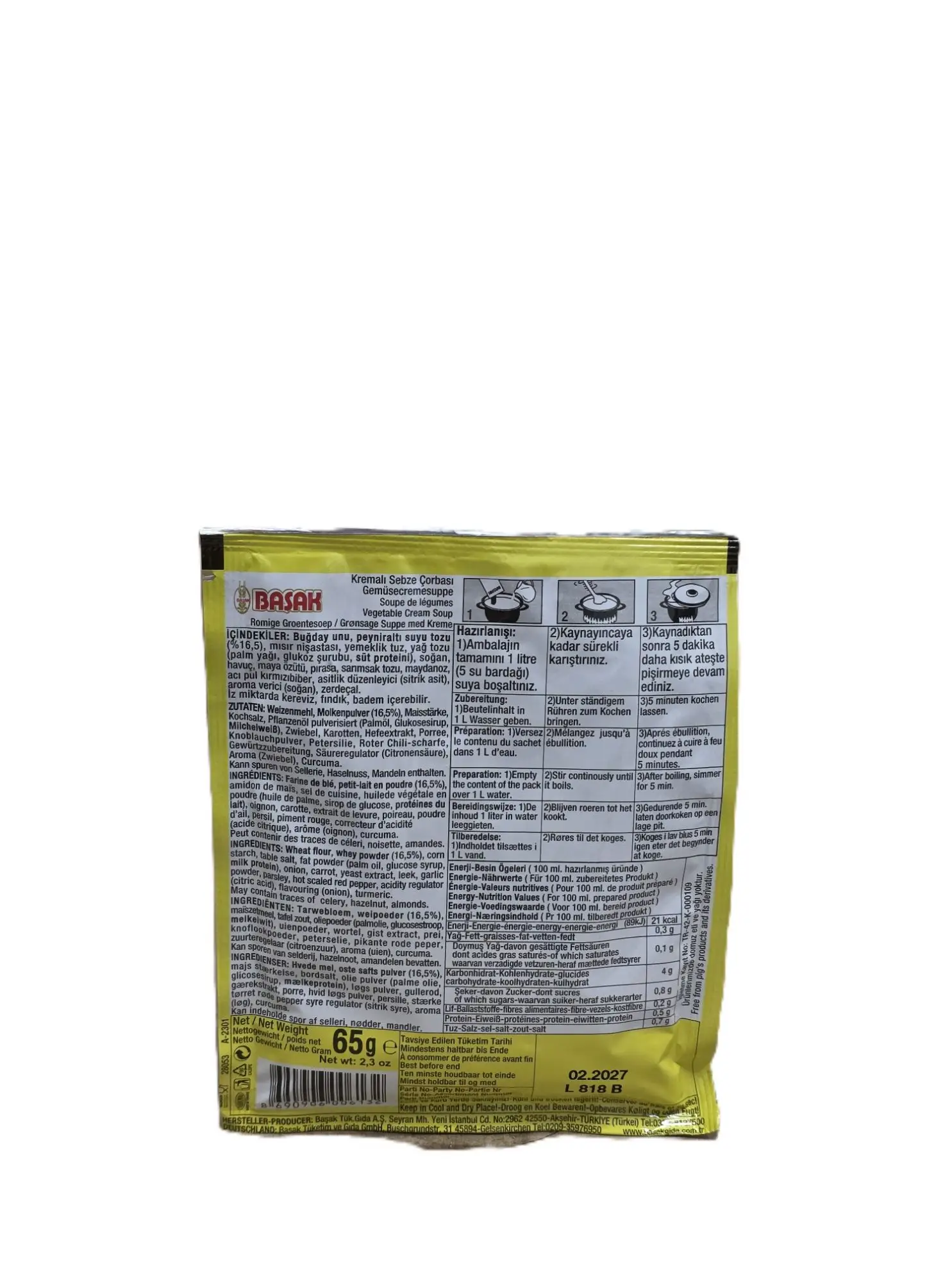 Basak Gemüsesuppe mit Sahne – Cremige Gemüsesuppe mit natürlichen Aromen und köstlichem Geschmack. Nettogewicht: 65g. Kategorie: Lebensmittel.