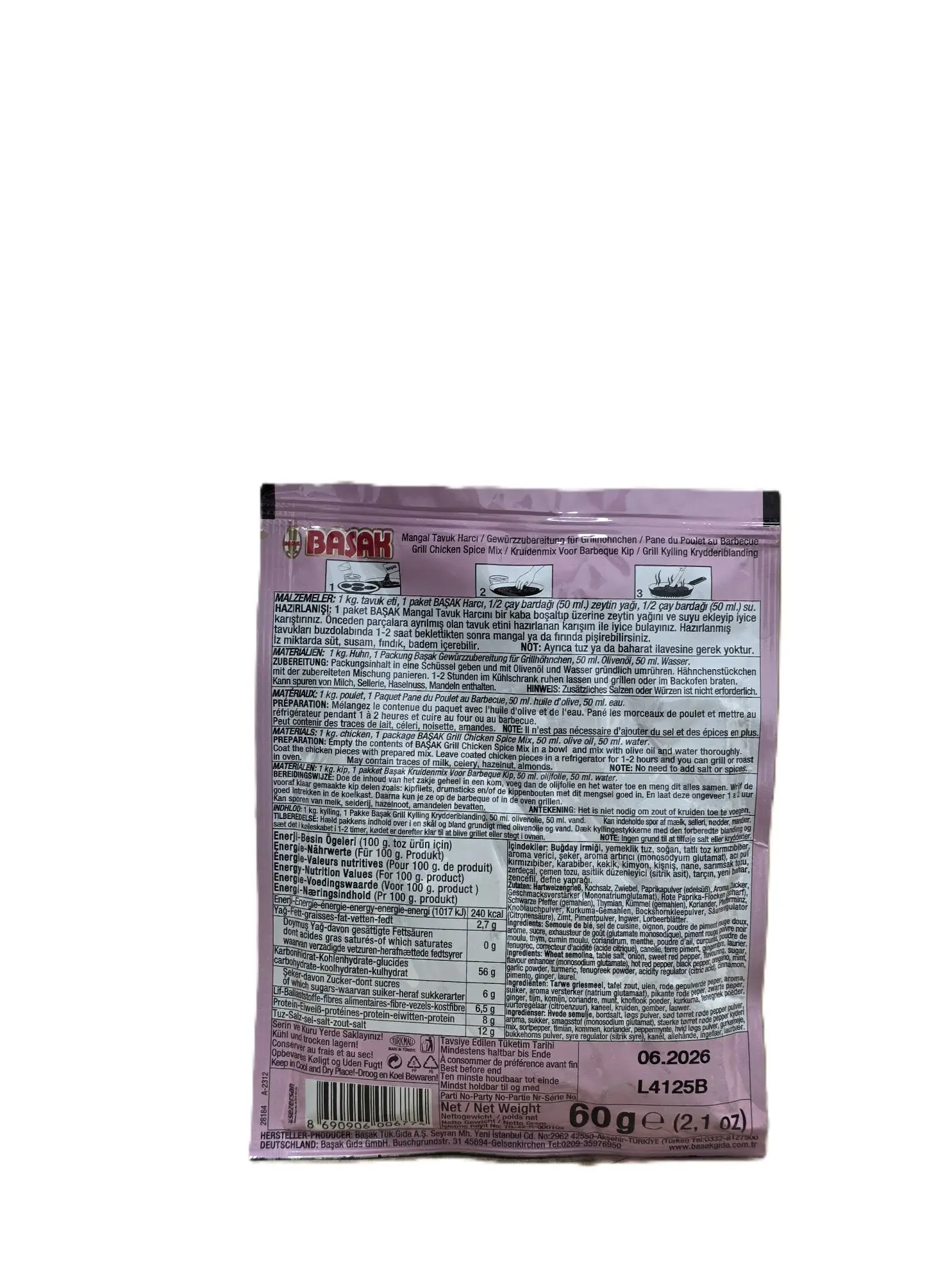 Basak Grill-Hähnchengewürz – Aromatische Gewürzmischung für perfekt gewürztes Grillhähnchen. Ideal für Grill und Pfanne. Nettogewicht: 60g. Kategorie: Lebensmittel.