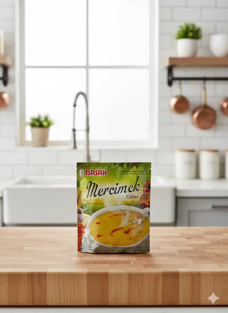 Rote Linsensuppe (Mercimek Corbasi), eine schnell zubereitete und nahrhafte Suppenmischung für 1 Liter.