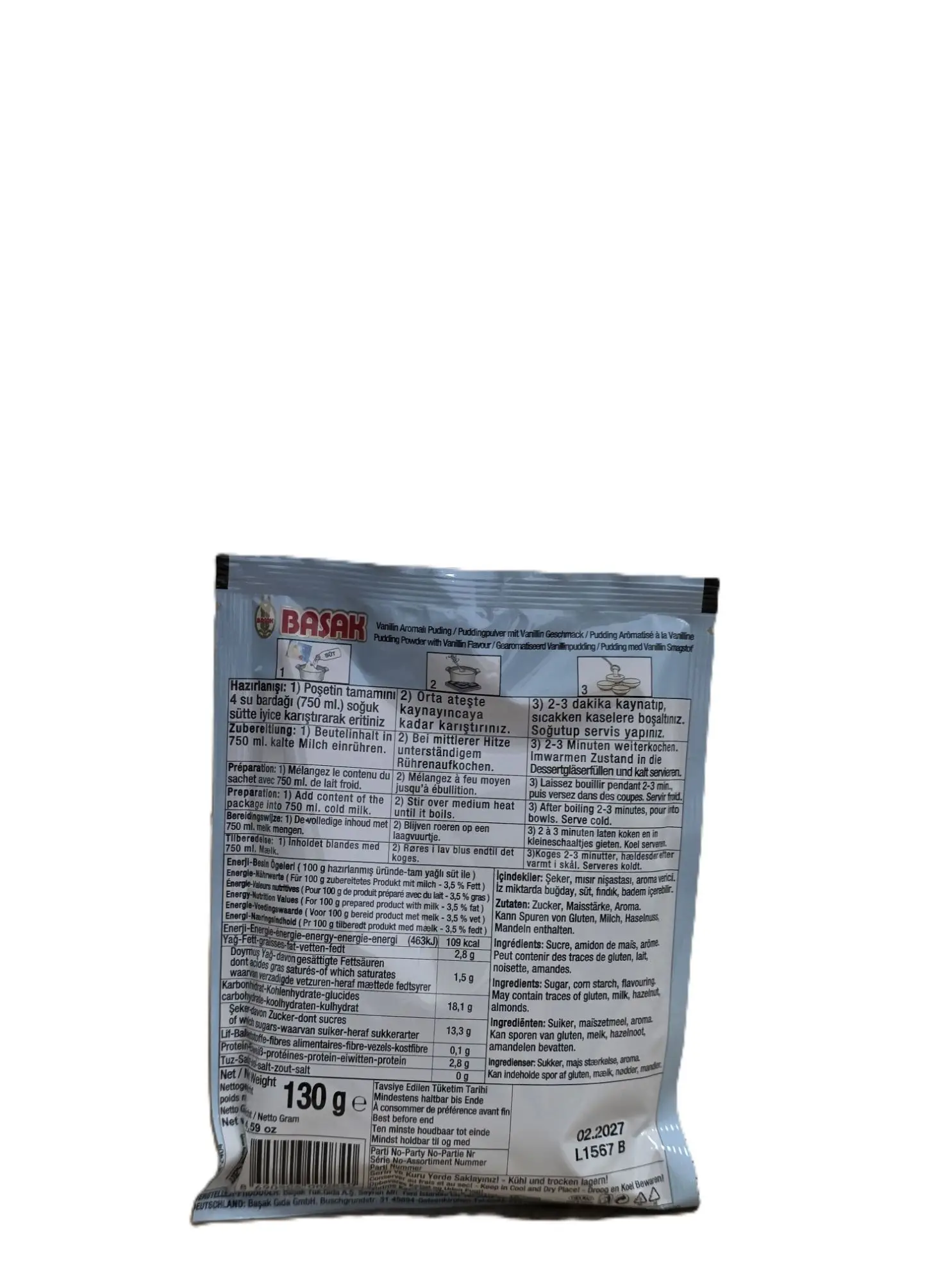 Klassische Pudingmischung mit cremigem Vanille-Aroma, einfach mit Milch zuzubereiten, 130 Gramm.