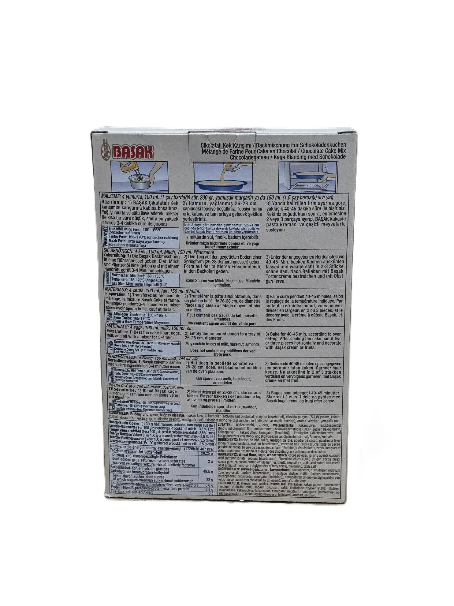 Basak Schokoladen-Kuchenmischung – Backmischung für saftigen Schokoladenkuchen. Einfach zuzubereiten, perfekt für Kuchen und Torten. Nettogewicht: 500g. Kategorie: Backmischungen.