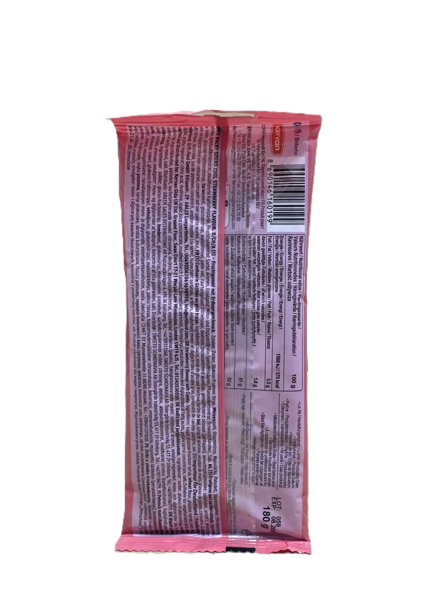 Bebeto Wacky Sticks Cool Strawberry 180g