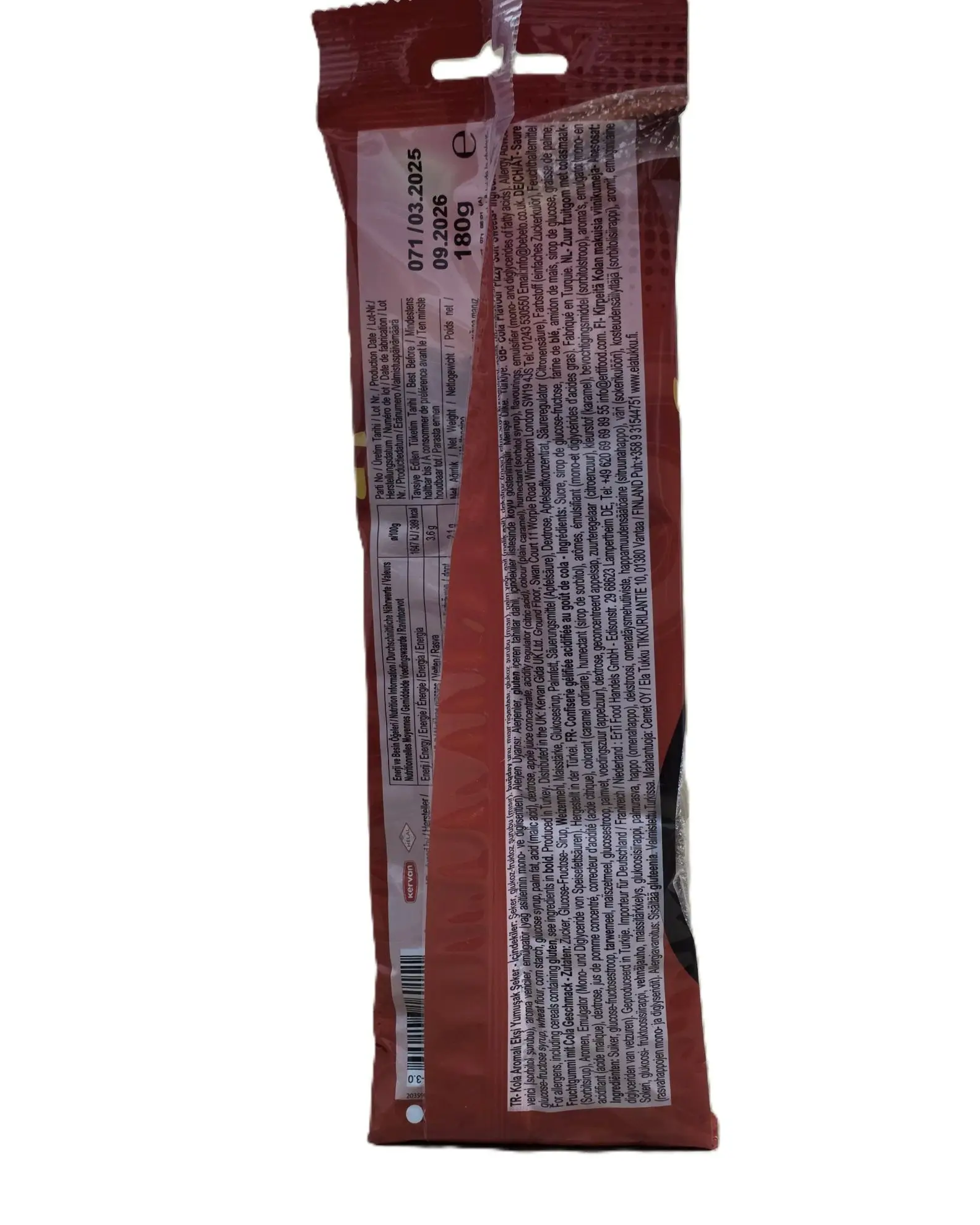 Spritzige Fruchtgummistäbchen mit Cola-Geschmack, einer sauren Zuckerhülle und weichem Kern. Vegan & Halal.