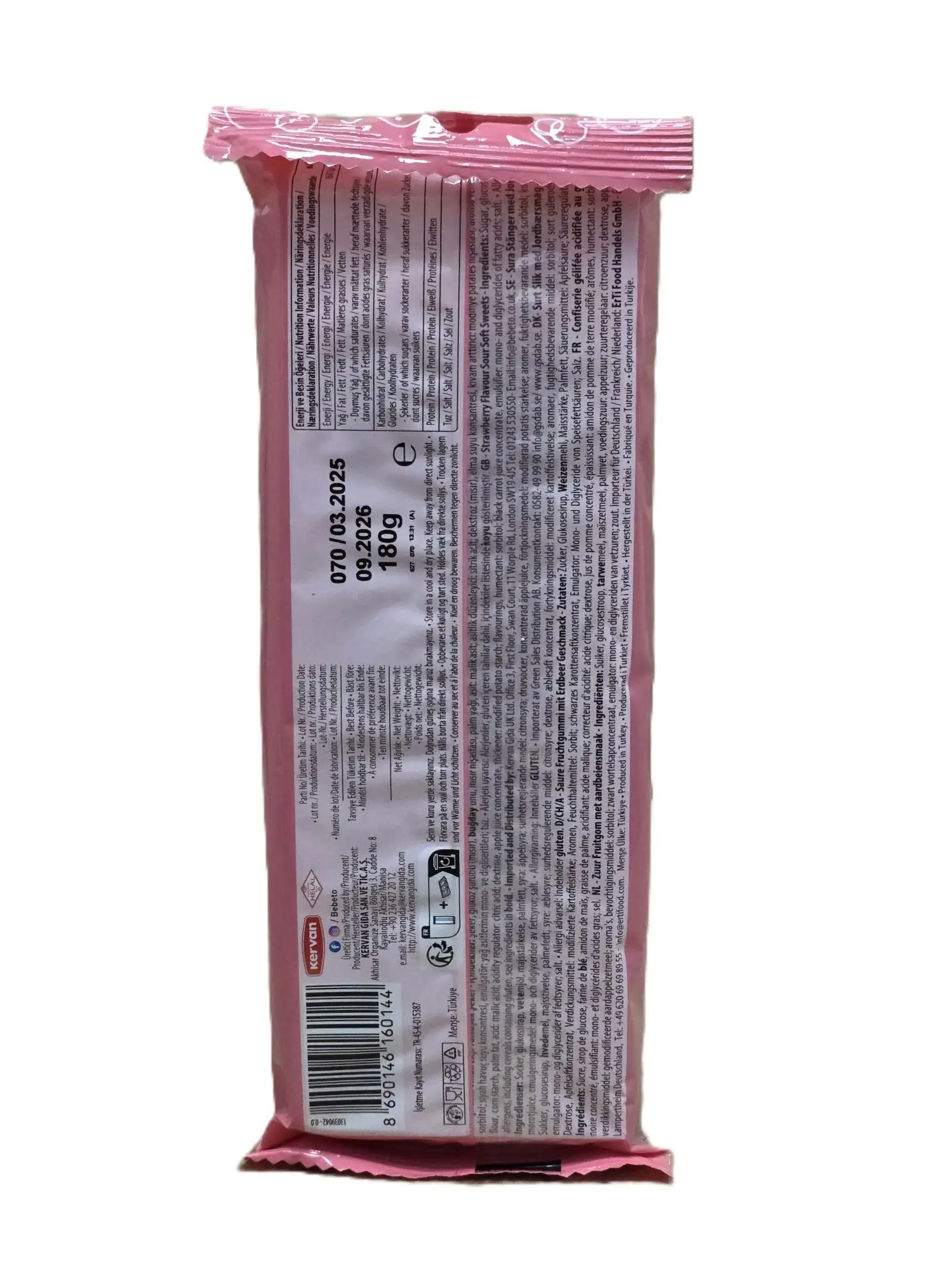 Saure, gezuckerte Fruchtgummistäbchen mit intensivem Erdbeergeschmack und cremiger Füllung. Vegan & Halal.