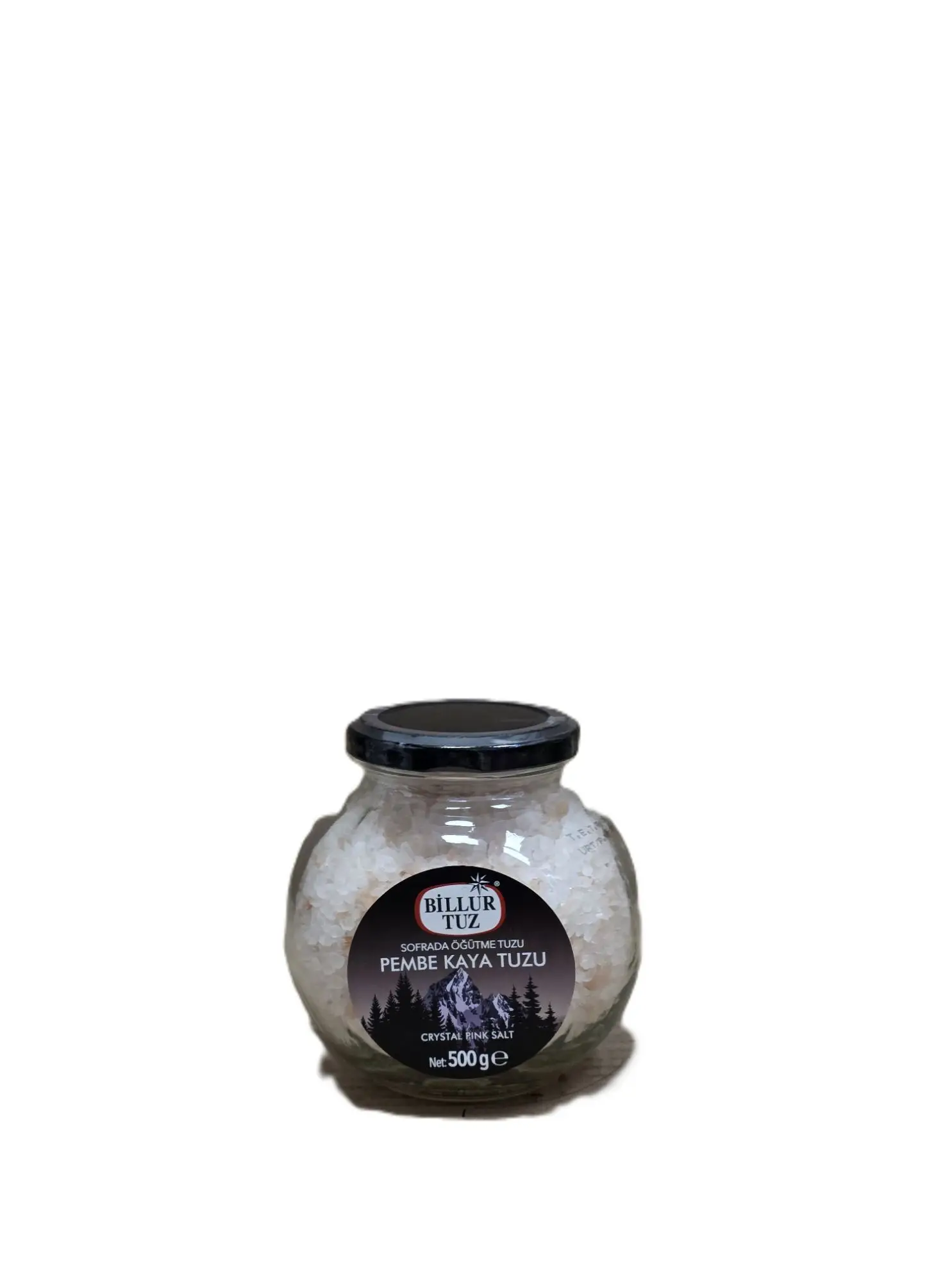Billur Pembe Kaya Tuzu – Natürliches rosa Kristallsalz, reich an Mineralien, ideal für Mühlen und die tägliche Küche. Inhalt: 500g.