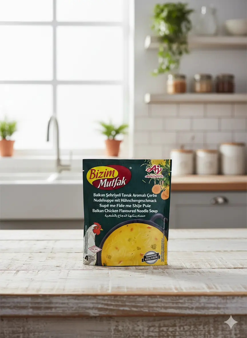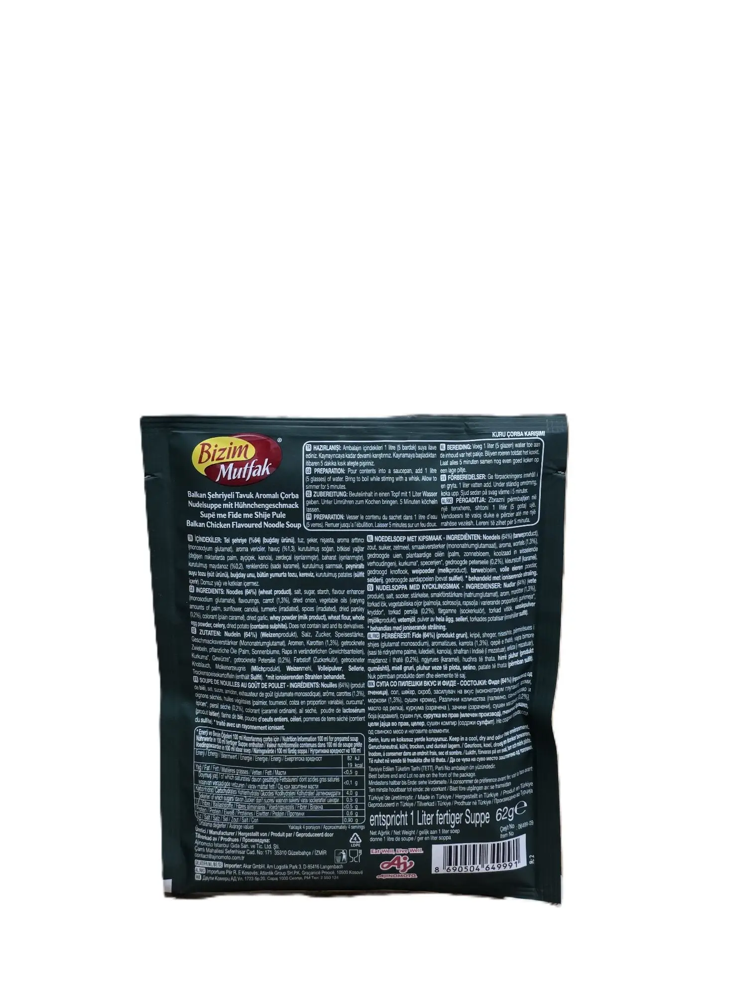 Bizim Mutfak Balkan Hühnchensuppe mit Nudeln – Würzige Hühnersuppe mit feinen Fadennudeln. Schnell zubereitet und aromatisch. Nettogewicht: 62g. Kategorie: Lebensmittel.