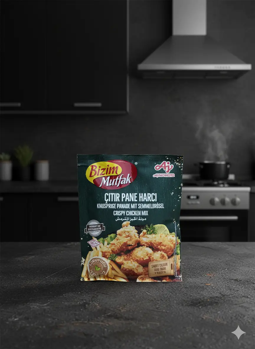 Bizim Mutfak Knusprige Paniermischung – Für perfekt goldbraune und knusprige Panade bei Hähnchen, Fisch oder Gemüse. Nettogewicht: 90g. Kategorie: Lebensmittel.