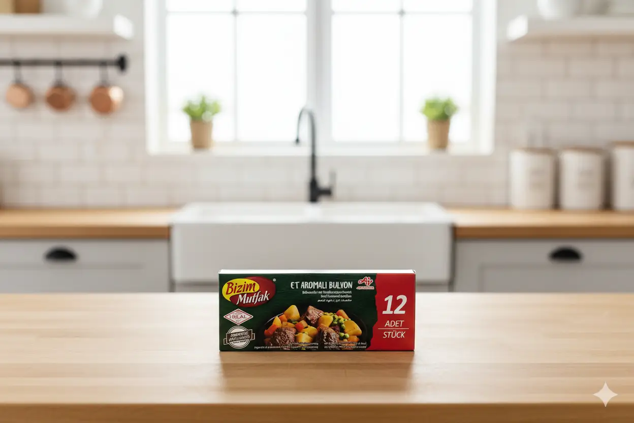 Bizim Mutfak Rinderbouillon – Brühwürfel mit kräftigem Rindfleischgeschmack. Ideal zum Verfeinern von Suppen, Saucen und Eintöpfen. Nettogewicht: 120g. Kategorie: Lebensmittel.