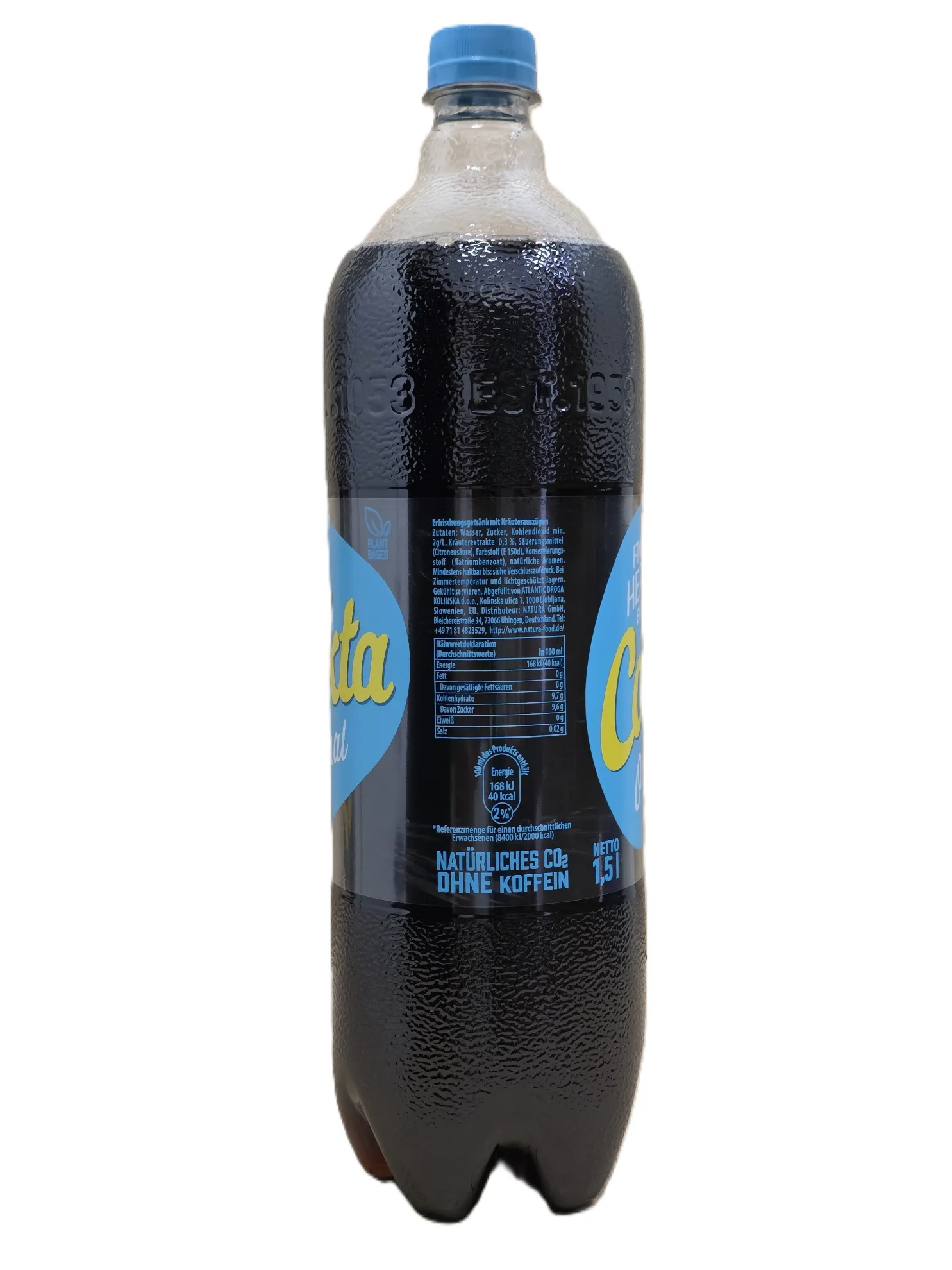 Ein erfrischendes kohlensäurehaltiges Getränk mit feinen Kräuterextrakten, ohne Koffein. 1500ml Flasche.