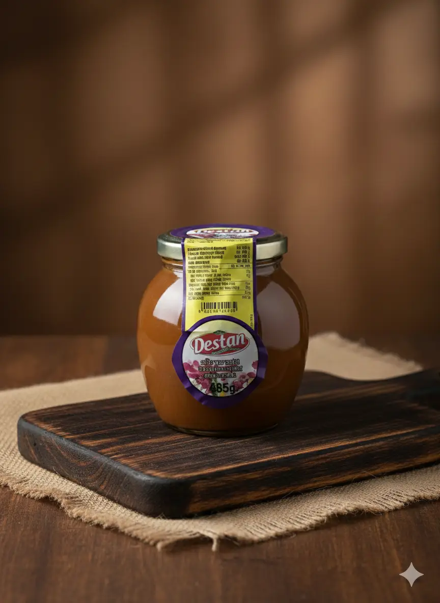Destan Sirup mit Honig 485g – Süßer Sirup, angereichert mit echtem Honig. Ideal als Brotaufstrich, zum Süßen von Getränken oder für Desserts.