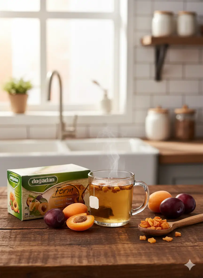 Doğadan Form 40g – Kräutertee-Mischung mit Aprikose und Pflaume. Fruchtiger Geschmack, ideal für eine ausgewogene Ernährung.