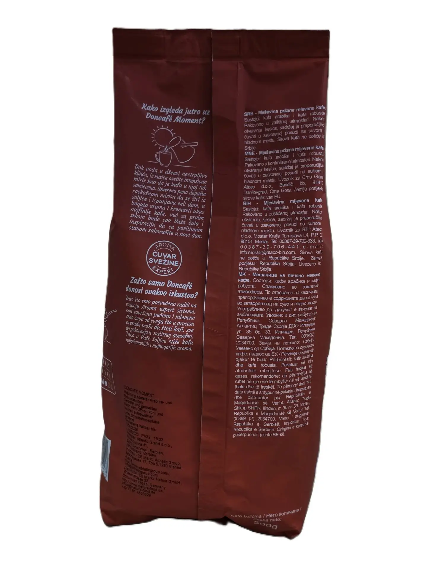 Doncafe Moment – Hochwertiger gemahlener Kaffee mit intensivem Aroma und vollem Geschmack. Mischung aus Arabica- und Robusta-Bohnen. Inhalt: 500g.
