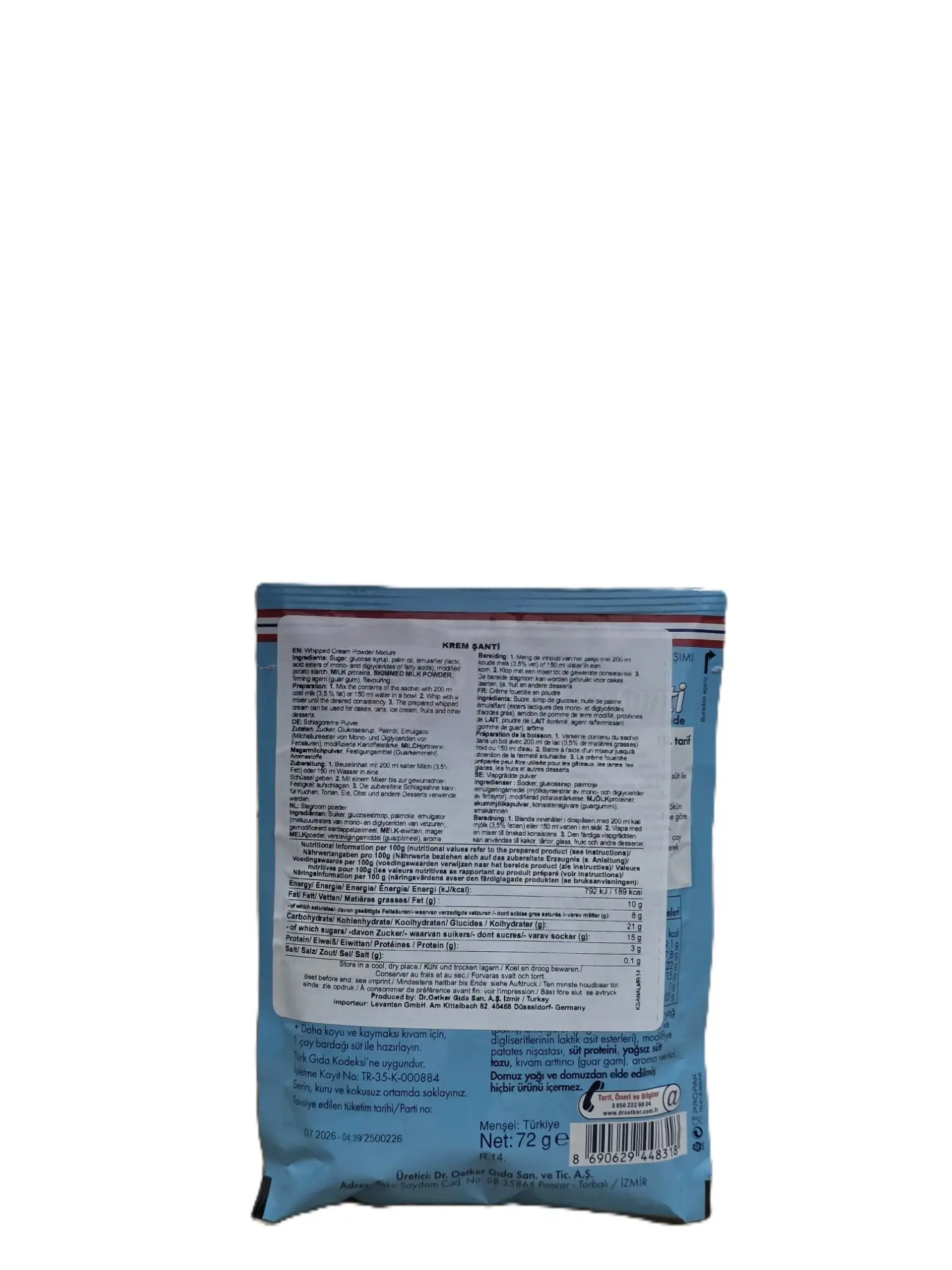 Sade (klasik) toz krema/santi karisimi, tatli dekorasyonlari icin ideal, 72 Gramm.