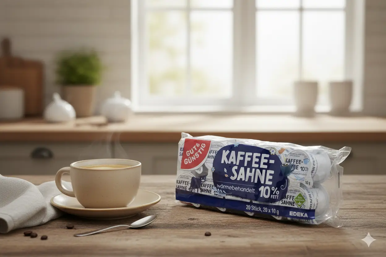 Edeka Kaffeesahne – Hitzebehandelte Kaffeesahne mit 10% Fett. Ideal zum Verfeinern von Kaffee. Packung mit 20 Stück à 10g.