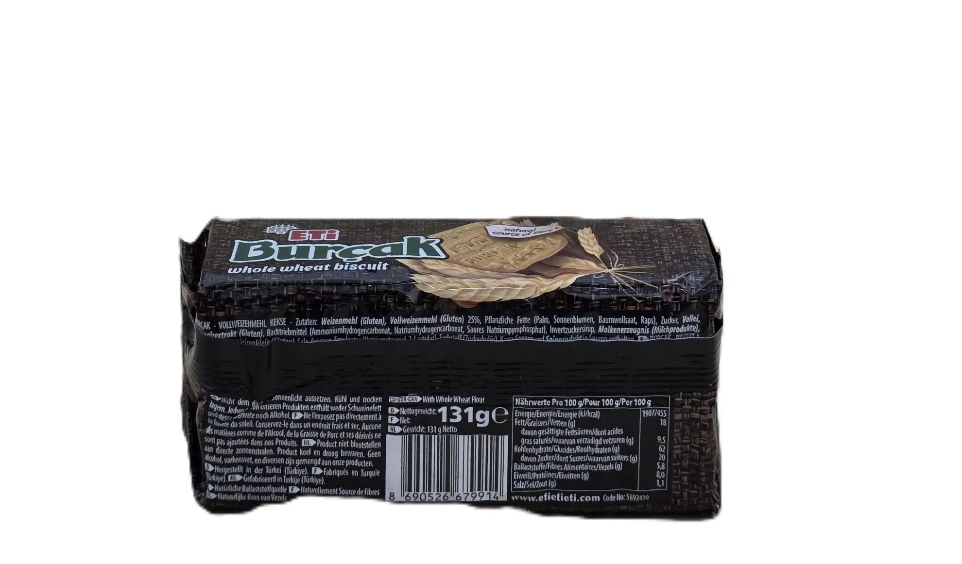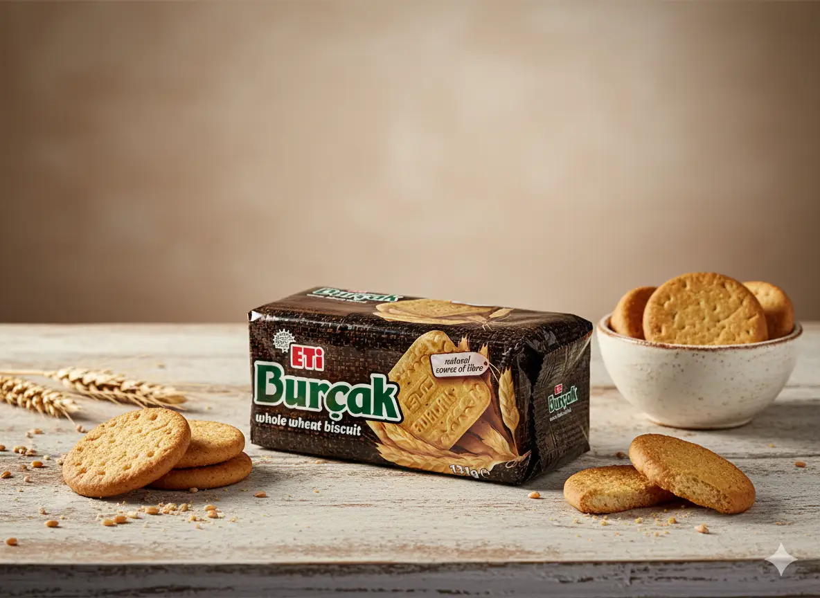 Eti Burçak – Klassischer Vollkornkeks aus Weizenmehl, natürliche Ballaststoffquelle für den Alltag. Nettogewicht: 131g. Kategorie: Snacks.