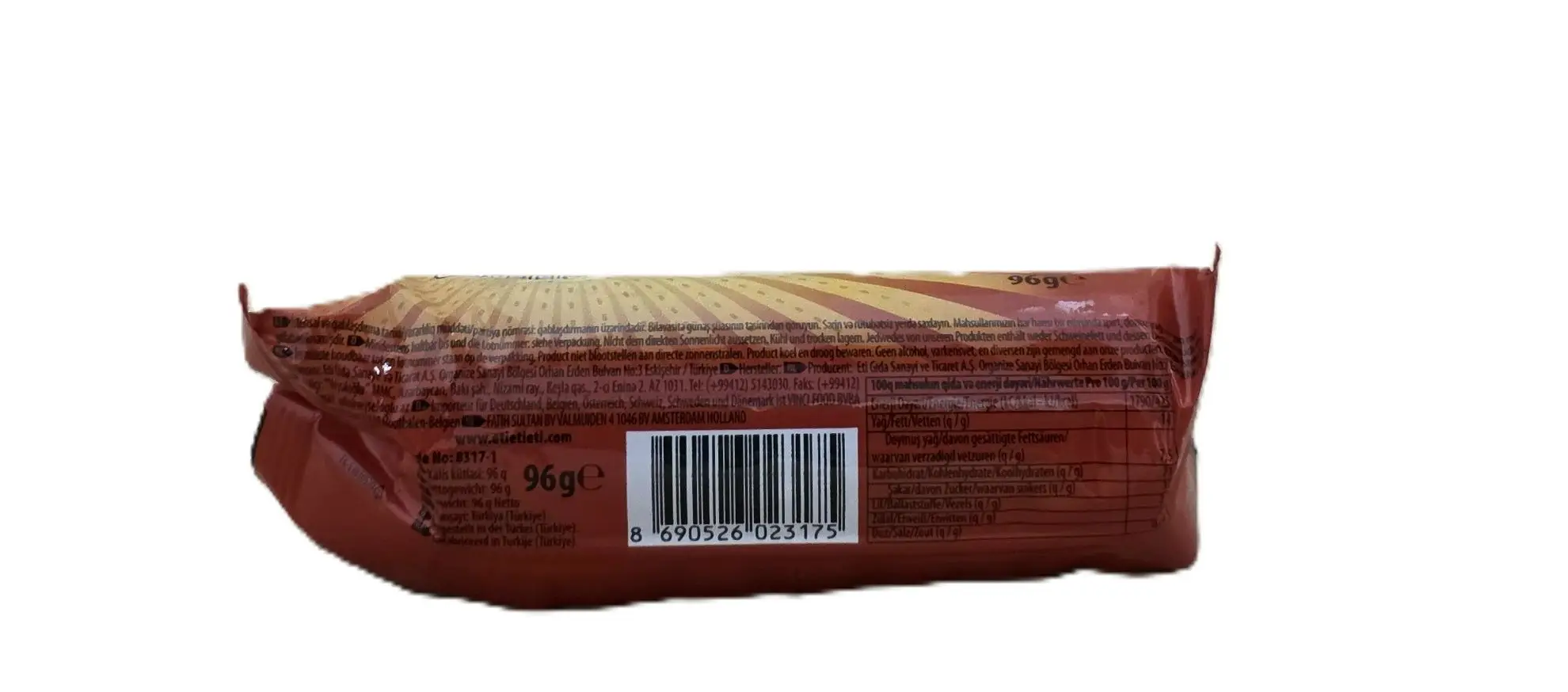Eti Cin Orange – Knuspriger Keks mit fruchtiger Orangengelee-Schicht und Schokoladestreuseln. Nettogewicht: 96g. Kategorie: Snacks.