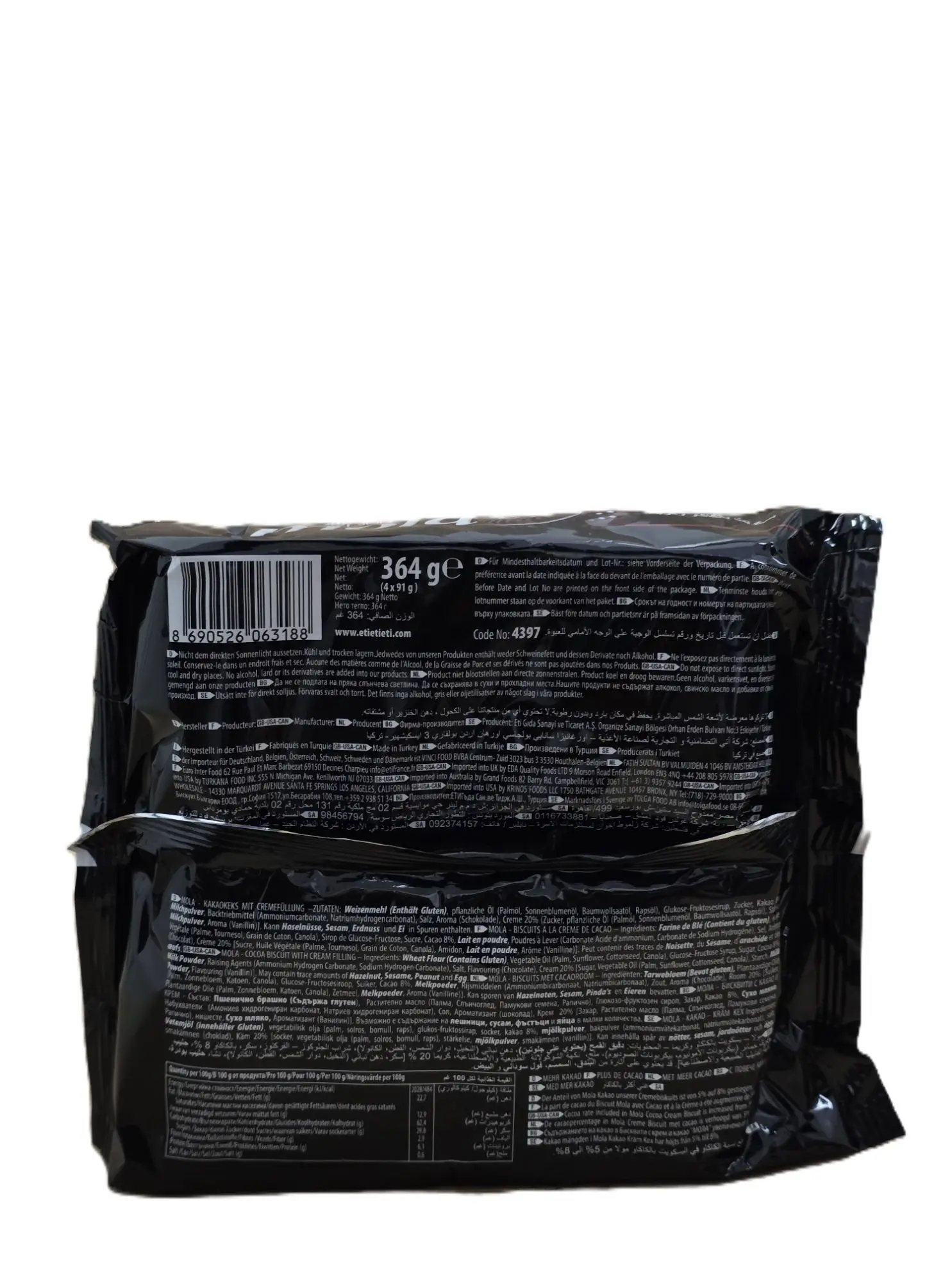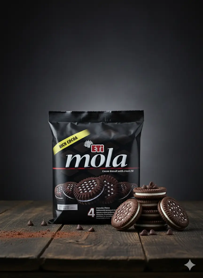 Eti Mola – Kakaokekse mit köstlicher Cremefüllung. Vier einzeln verpackte Portionen für maximalen Genuss. Nettogewicht: 364g. Kategorie: Snacks.
