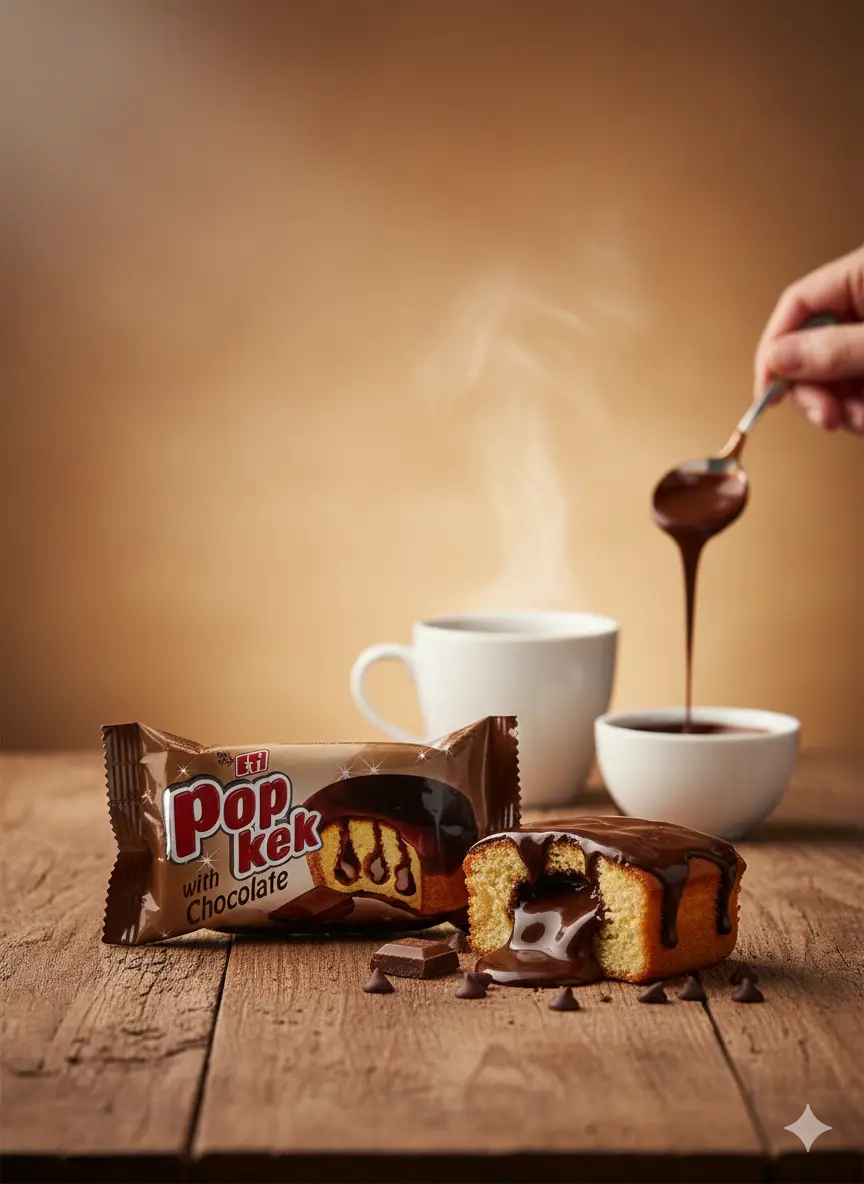 Eti Popkek Chocolate – Schokoladenkuchen mit cremiger Füllung, überzogen mit dunkler Schokolade. Ein echter Genussmoment. Nettogewicht: 45g. Kategorie: Snacks.