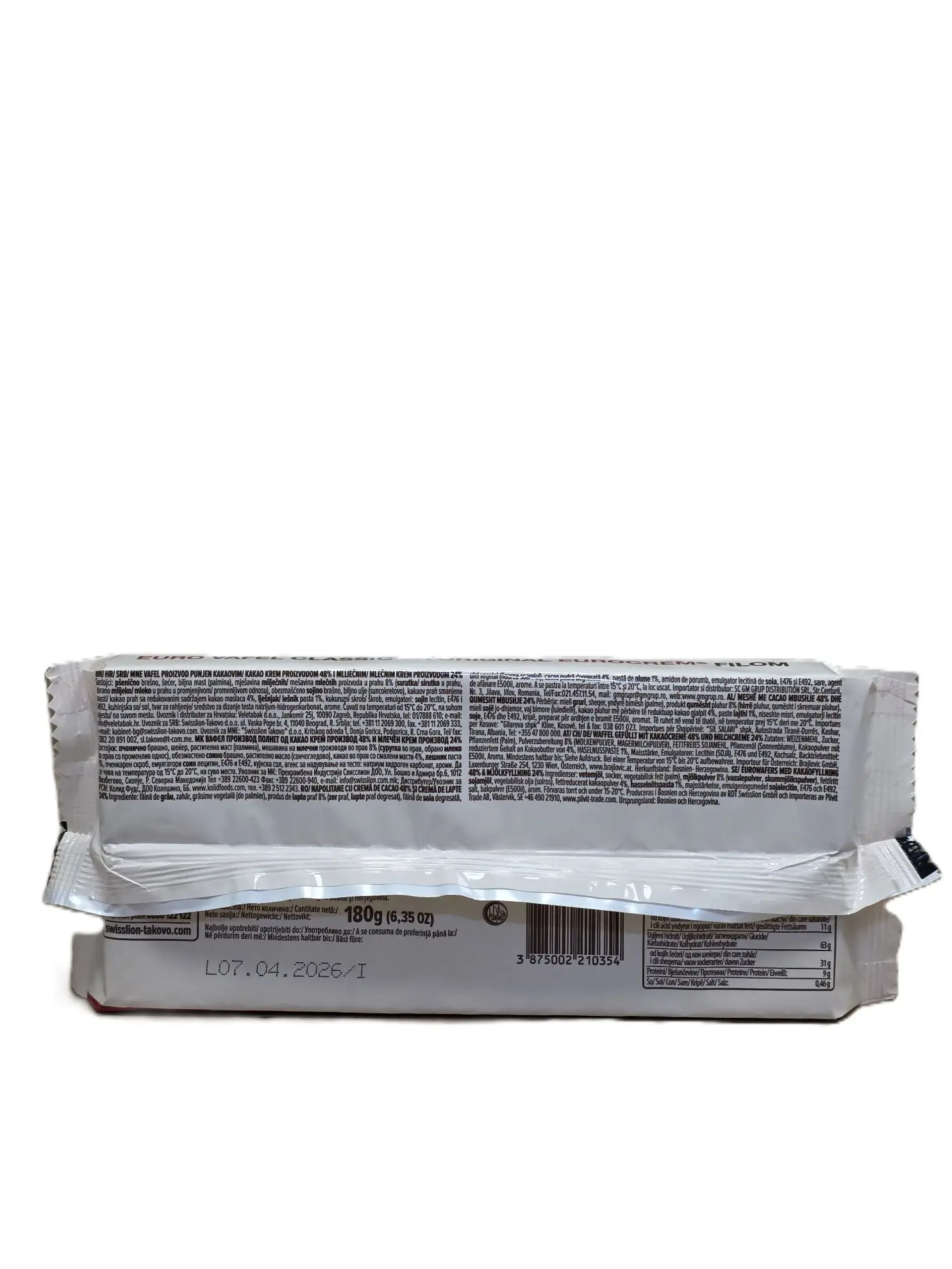 Knusprige Waffelspezialität gefüllt mit einer Kombination aus Kakao- und Milchcreme (Original Eurocrem).