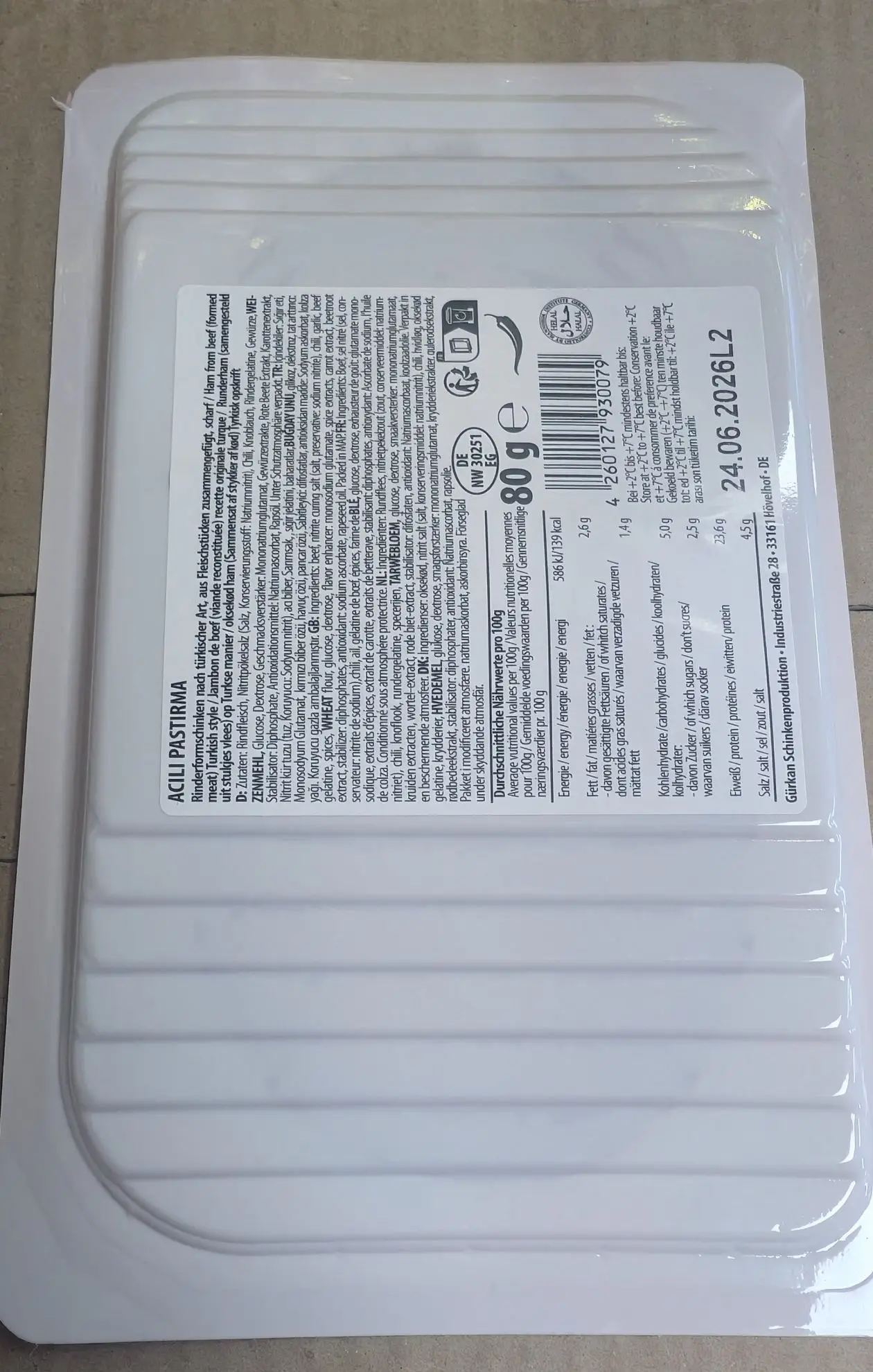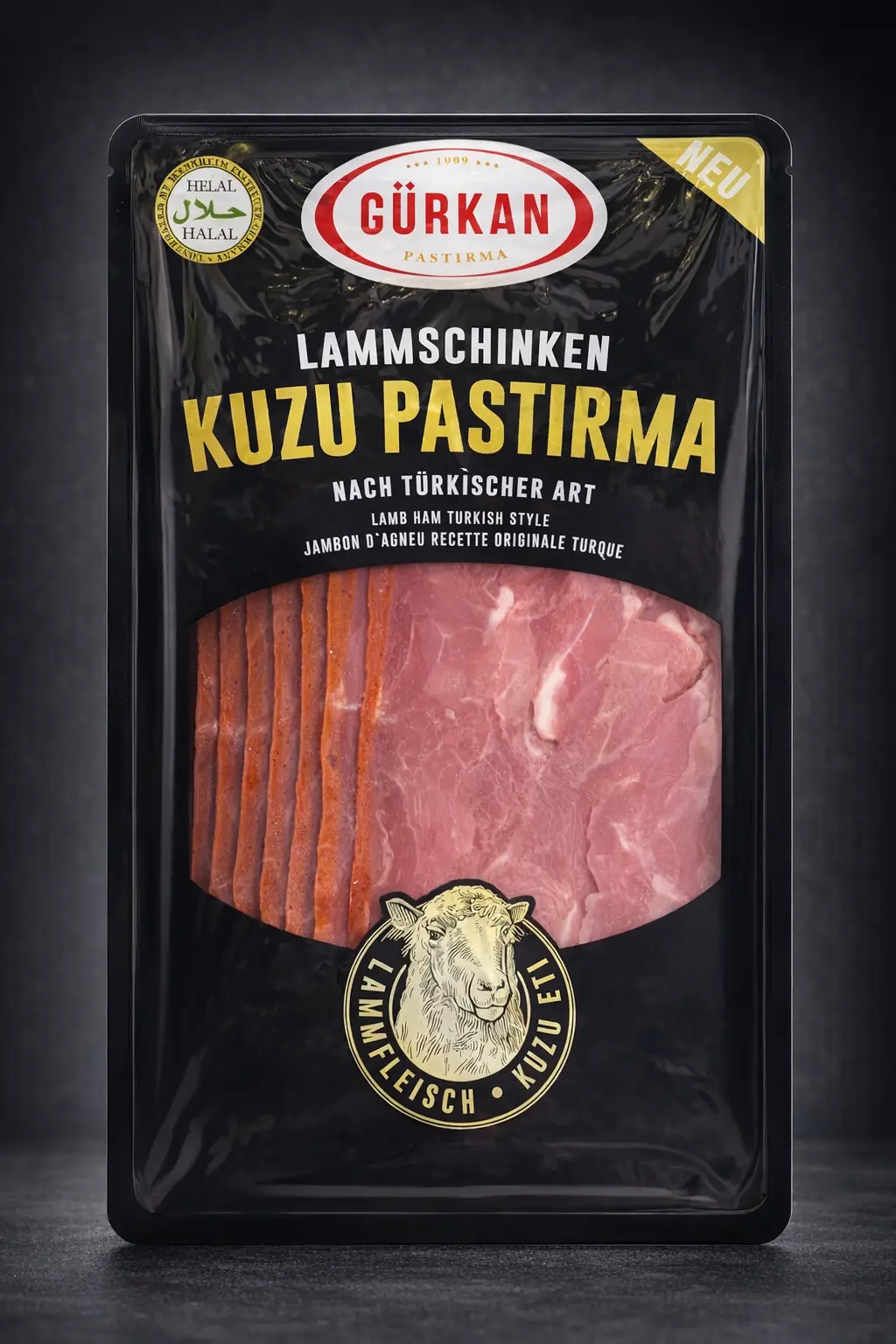 Gürkan Kuzu Pastırma (80g) – Exklusiver Lammgenuss Entdecken Sie eine besondere Delikatesse: Das Gürkan Kuzu Pastırma wird aus hochwertigem Lammfleisch nach traditioneller türkischer Rezeptur hergestellt. Fein geschnitten und mit einer edlen Gewürzkruste (Çemen) veredelt, bietet es ein intensives und unvergleichliches Aroma. Highlights des Produkts: Premium-Lammfleisch: Eine seltene und geschmacksintensive Alternative zum klassischen Rinder-Pastirma. Authentische Rezeptur: Luftgetrocknet und meisterhaft gewürzt nach original türkischer Art. Halal: Zertifiziert durch das Mannheim Institute, garantiert nach islamischen Richtlinien hergestellt. Vielseitig: Perfekt als Highlight auf einer Vorspeisenplatte (Meze), zu frischem Brot oder als feine Beilage zum Frühstück. Lagerungshinweis: Kühl lagern und nach dem Öffnen innerhalb weniger Tage verzehren. Allergen-Hinweis: Enthält Weizenmehl (Gluten) und Rindergelatine.