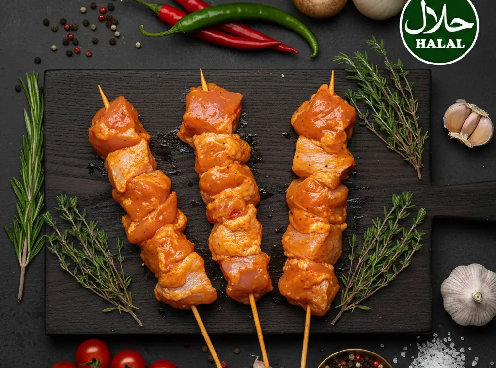 Saftige, frisch zubereitete Hähnchenspieße – ideal mariniert, zart im Biss und perfekt für Grill, Pfanne oder Ofen. Ein Spieß wiegt ca. 200–250 g und eignet sich hervorragend für schnelle, aromatische Mahlzeiten.