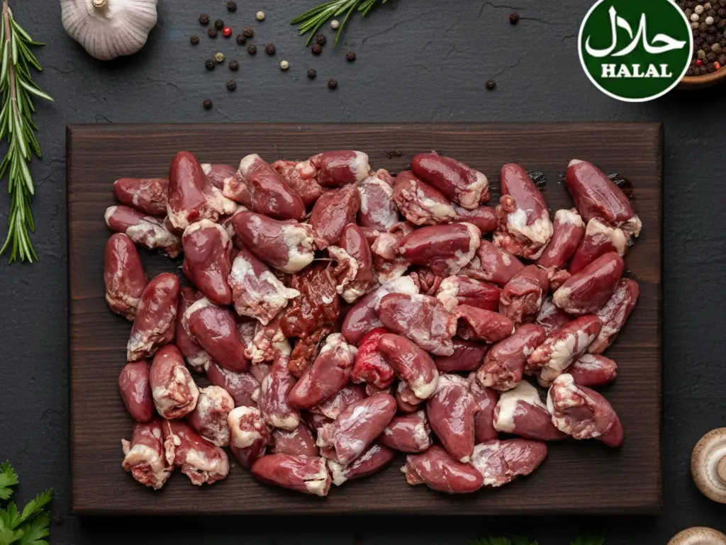 Frische Hühnerherzen, eine Delikatesse für Liebhaber von Innereien, ideal für die Pfanne.