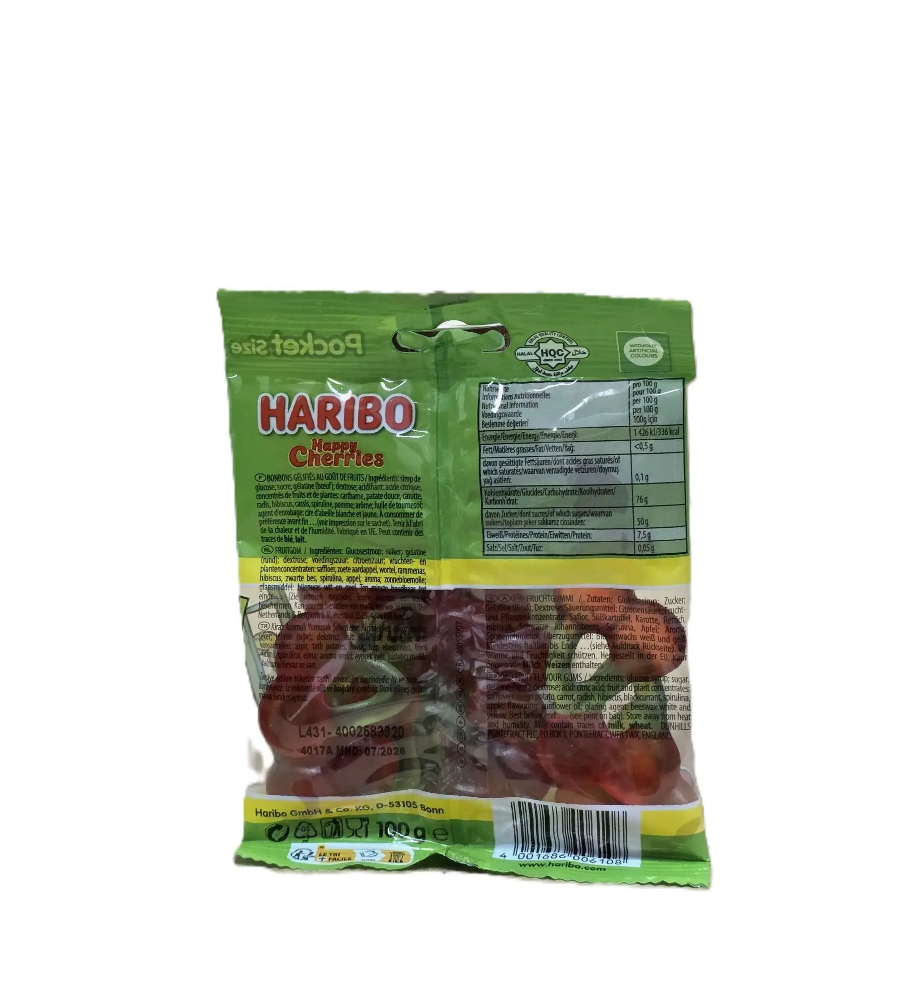 Klassische kirschförmige Fruchtgummis mit einem süßen, fruchtigen Geschmack. Halal-zertifiziert.