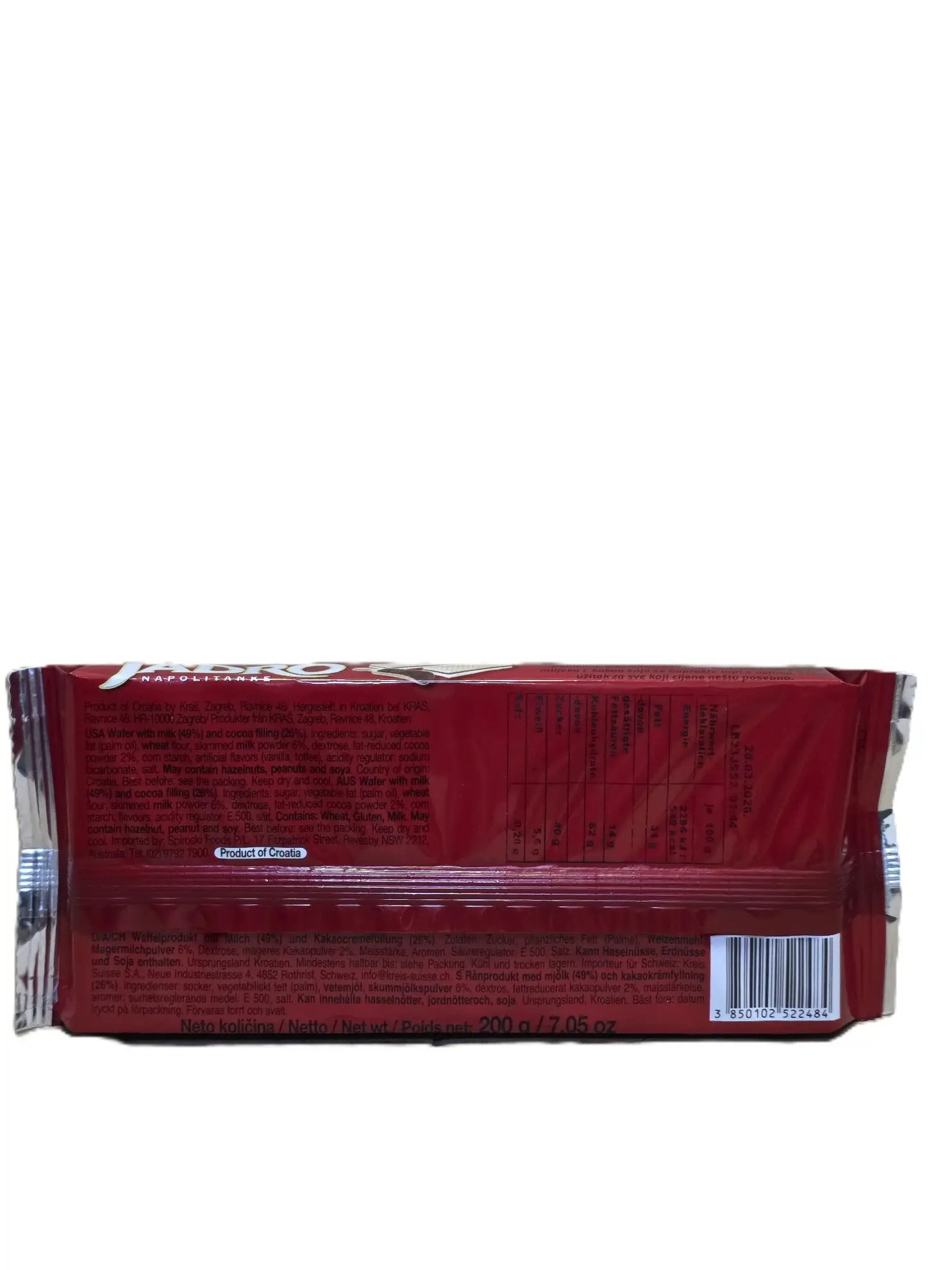 Traditional wafers with a double layer of milk and cocoa filling. Net weight: 200g.