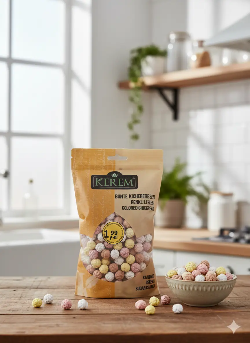 Kerem Bunte Kichererbsen – farbenfrohe, süß kandierte Kichererbsen. Knusprig, lecker und perfekt als Snack. Inhalt: 250g.
