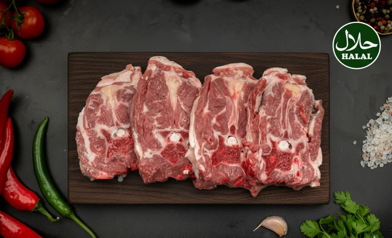 Lammhalsscheiben – saftiges, aromatisches Halal‑Lammfleisch, ideal zum Schmoren, Braten oder für traditionelle Gerichte.